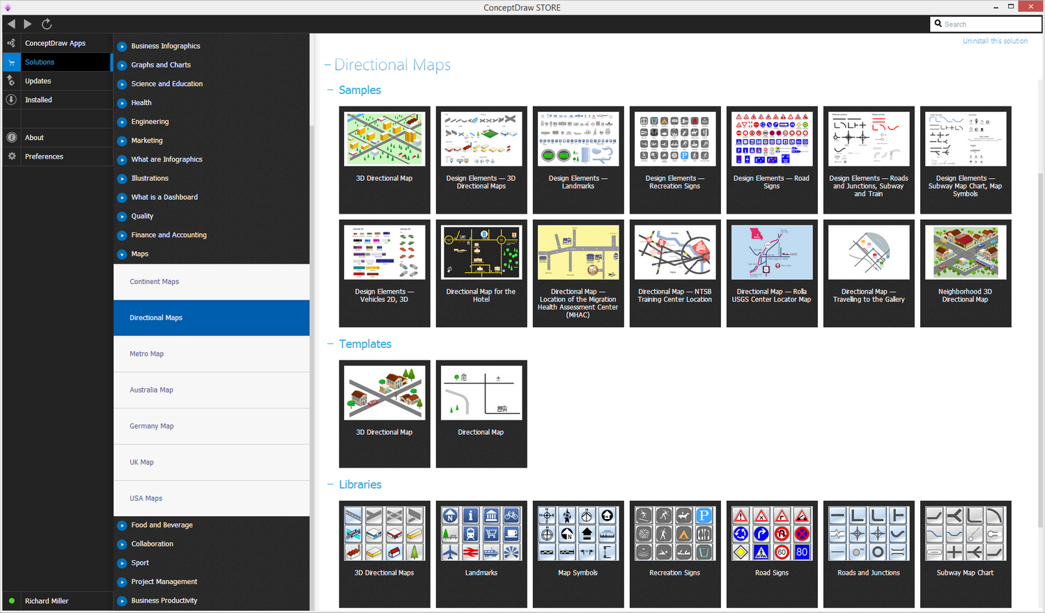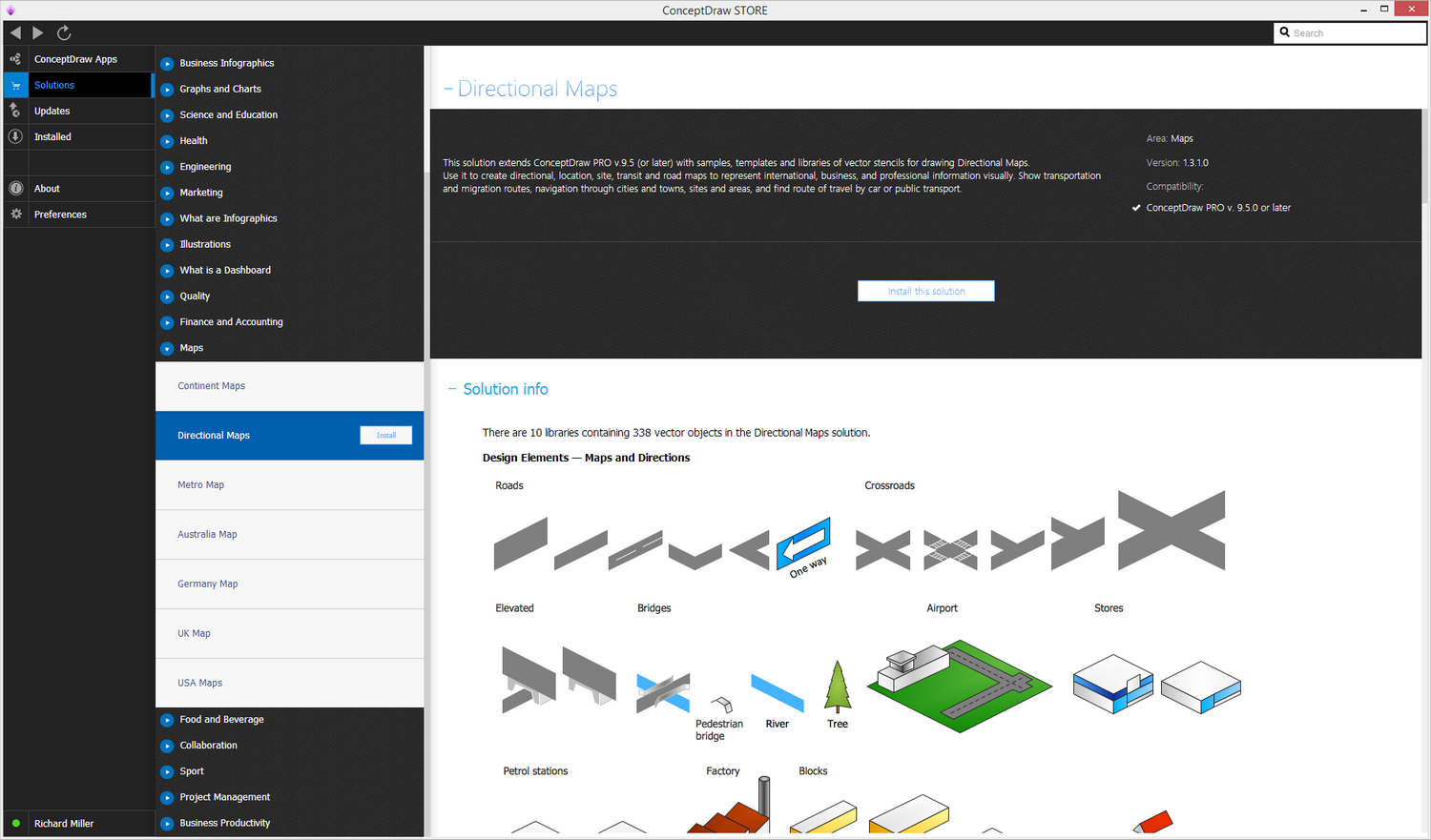 After ConceptDraw STORE and ConceptDraw DIAGRAM are downloaded and installed, you can install the Directional Maps solution from the ConceptDraw STORE.