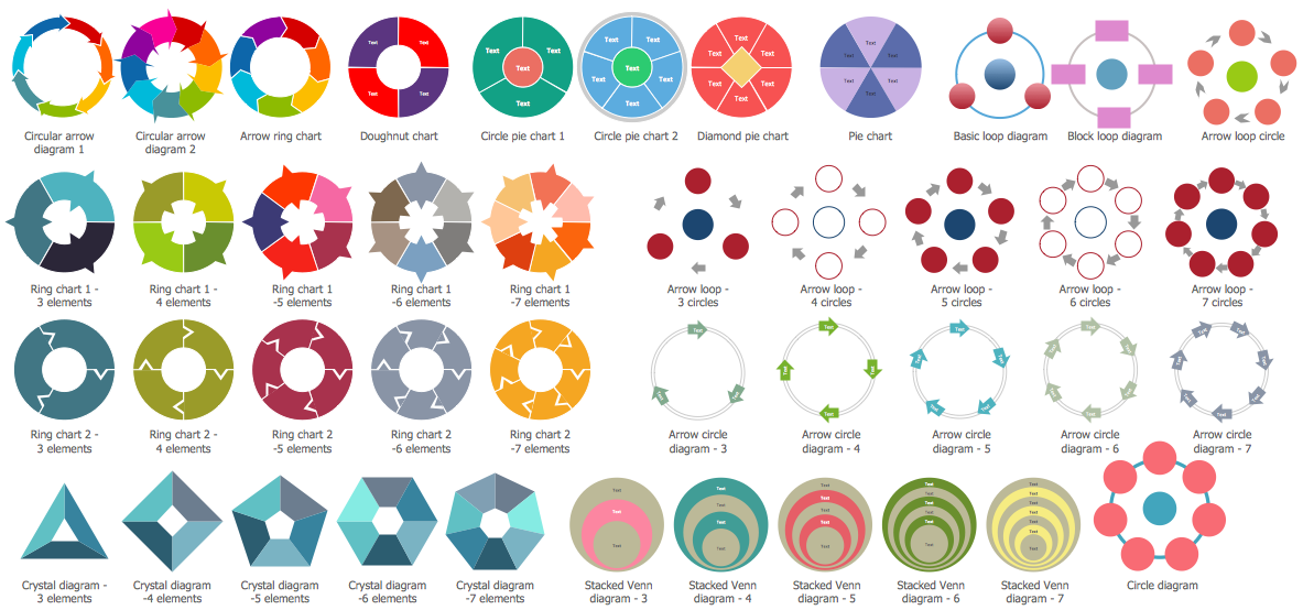 All source documents are vector graphic documents which are always available for modifying, reviewing and/or converting to many different formats, such as MS PowerPoint, PDF file, MS Visio, and many other graphic ones from the ConceptDraw Solution Park or ConceptDraw STORE. The Target and Circular Diagrams solution is available to all ConceptDraw DIAGRAM users to get installed and used while working in the ConceptDraw DIAGRAM diagramming and drawing software.