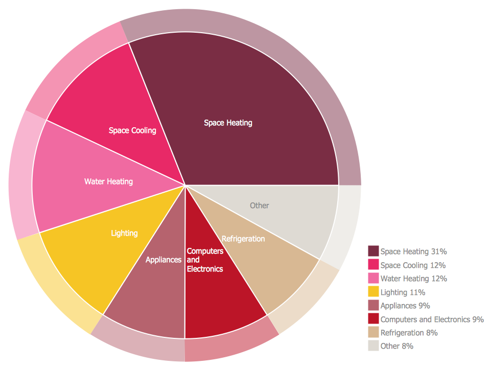 This sample demonstrates a pie chart of energy consumption. For clarity, this diagram is color coded. You can also see a legend that gives the percentage ratios of the different pie chart sectors.