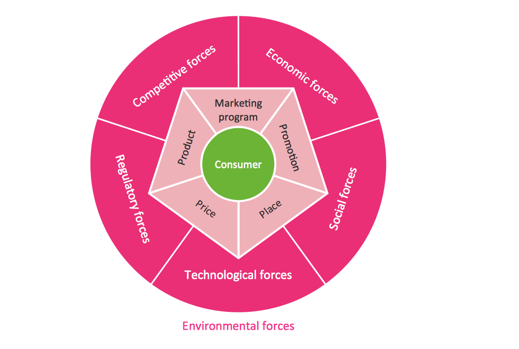 For conducting the described analysis, the ConceptDraw DIAGRAM diagramming and drawing software can be used. In order to complete the needed tasks, such as creating a circular diagram for illustrating the Product Lifecycle, the Target and Circular Diagrams solution can be used. It extends ConceptDraw DIAGRAM application with the pre-made samples and templates of the circular diagrams, offering a stencil library full of design elements that can be all used for drawing Target and Circular Diagrams, such as Target Diagrams, Daily Schedule Charts, Macro-Micro Environmental Forces Diagrams, Brand Essence Model Diagrams, Market Scope Diagrams, Ring Charts, Marketing Mix Diagrams and Stakeholder Diagrams.
