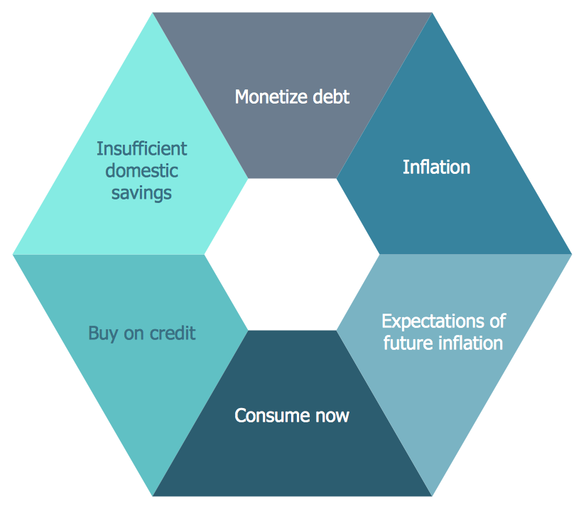 This sample diagram shows the vicious circle. It’s economic term which describes a complex chain of economic events that have detrimental results. This system is a feedback loop that reinforces itself on the each iteration of the cycle.