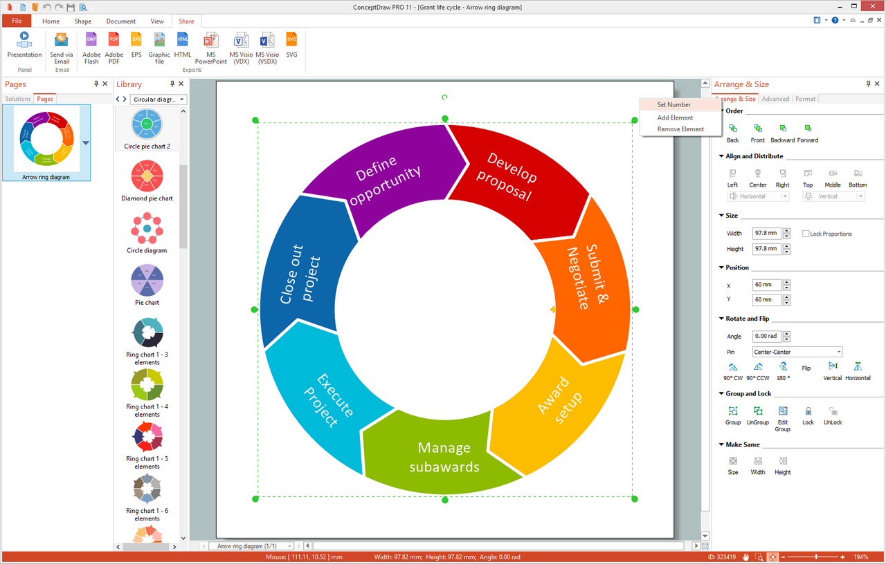 This diagram was created in ConceptDraw DIAGRAM using the “Circular Diagrams” library from the Target and Circular Diagrams Solution. An experienced user spent 5 minutes creating this sample.