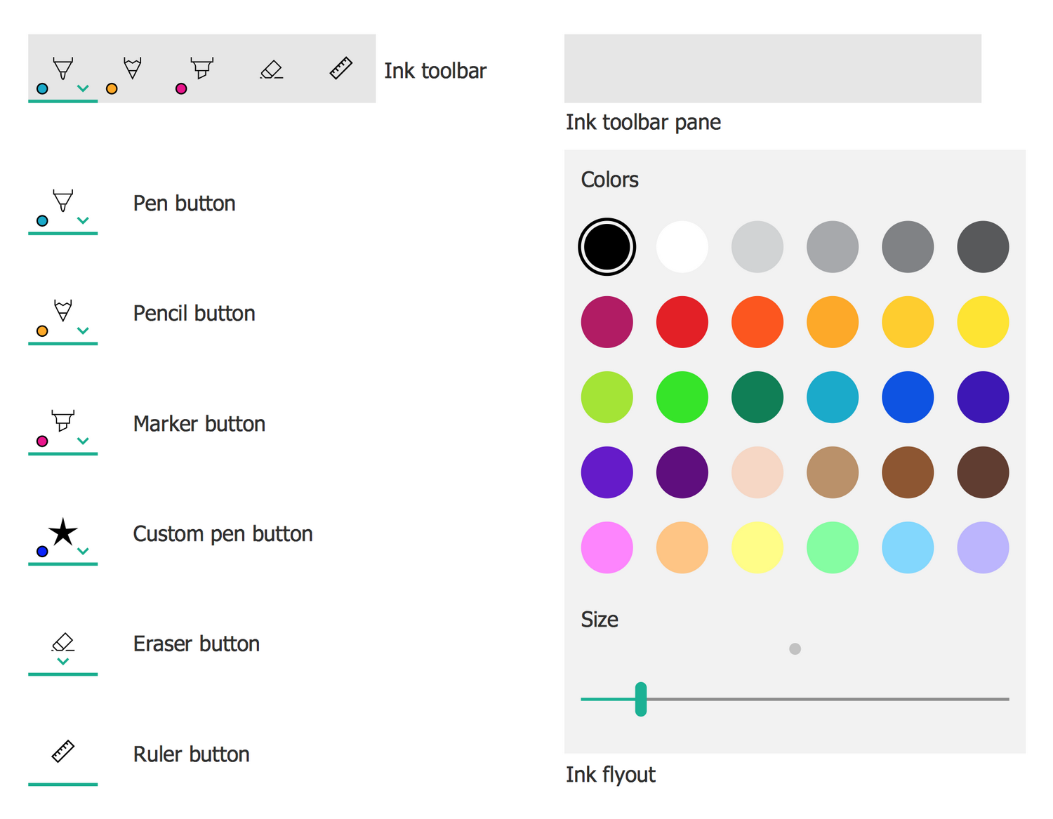 All source documents are vector graphic documents which are always available for modifying, reviewing and/or converting to many different formats, such as MS PowerPoint, PDF file, MS Visio, and many other graphic ones from the ConceptDraw Solution Park or ConceptDraw STORE. The Windows 10 User Interface solution is available to all ConceptDraw DIAGRAM users to get installed and used while working in the ConceptDraw DIAGRAM diagramming and drawing software.