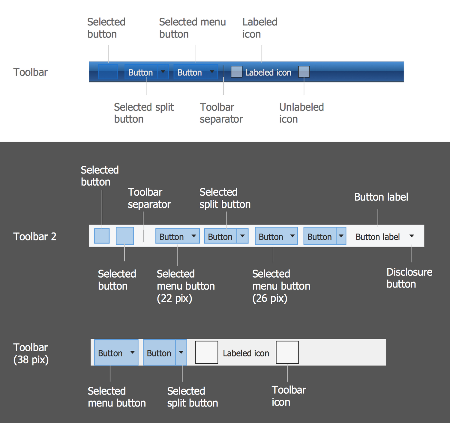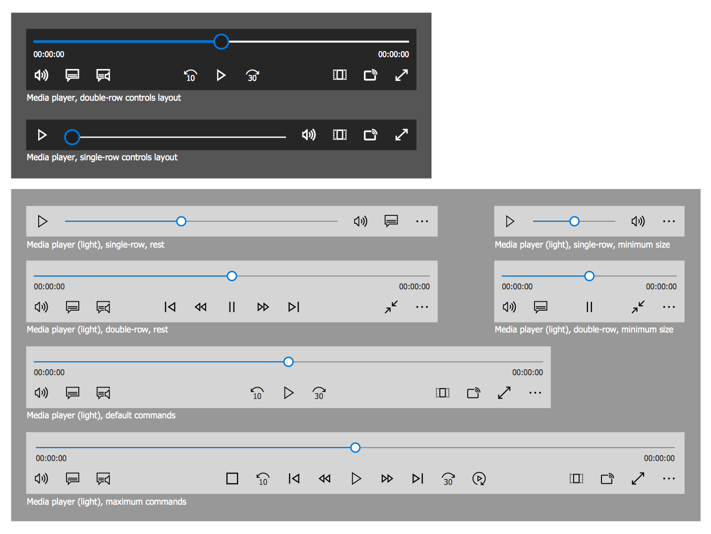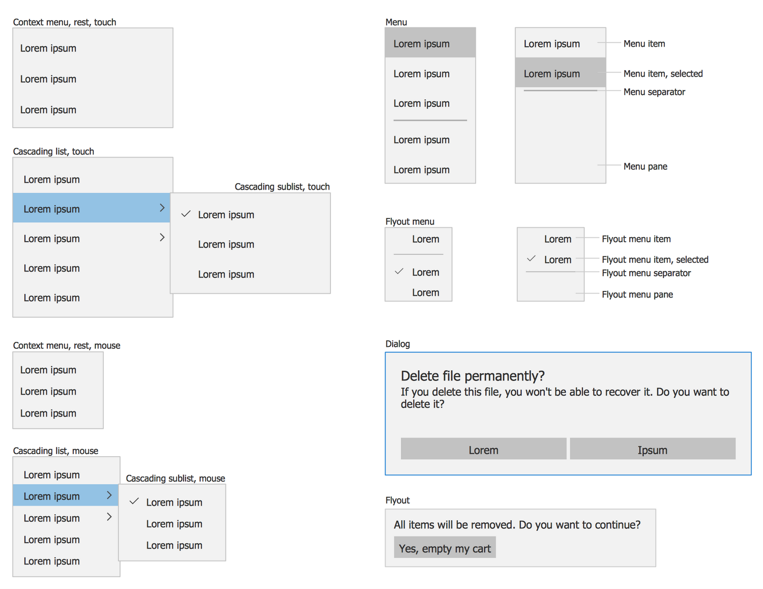 This diagram was created in ConceptDraw DIAGRAM using the set of libraries from the Windows 10 User Interface solution. An experienced user spent 5 minutes creating this sample.