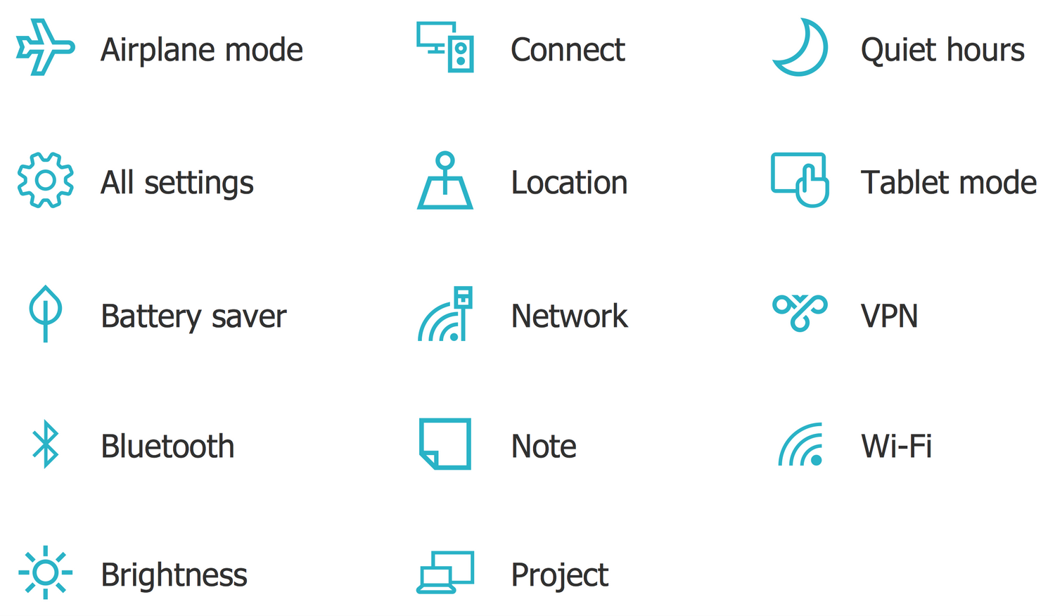 The new Battery Saver feature of Windows 10 helps to optimize and extend the battery life on the devices with Windows 10 installed by limiting background activity and adjusting the hardware settings. This and many other Windows 10 graphical user interface examples, templates, and samples are available from ConceptDraw Store.