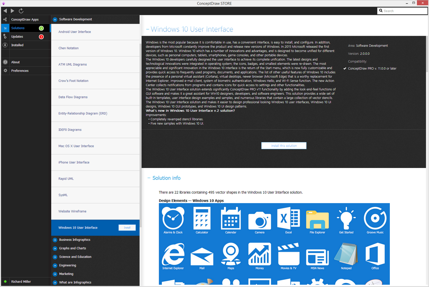 After ConceptDraw STORE and ConceptDraw DIAGRAM are downloaded and installed, you can install the Windows 10 User Interface solution from the ConceptDraw STORE.