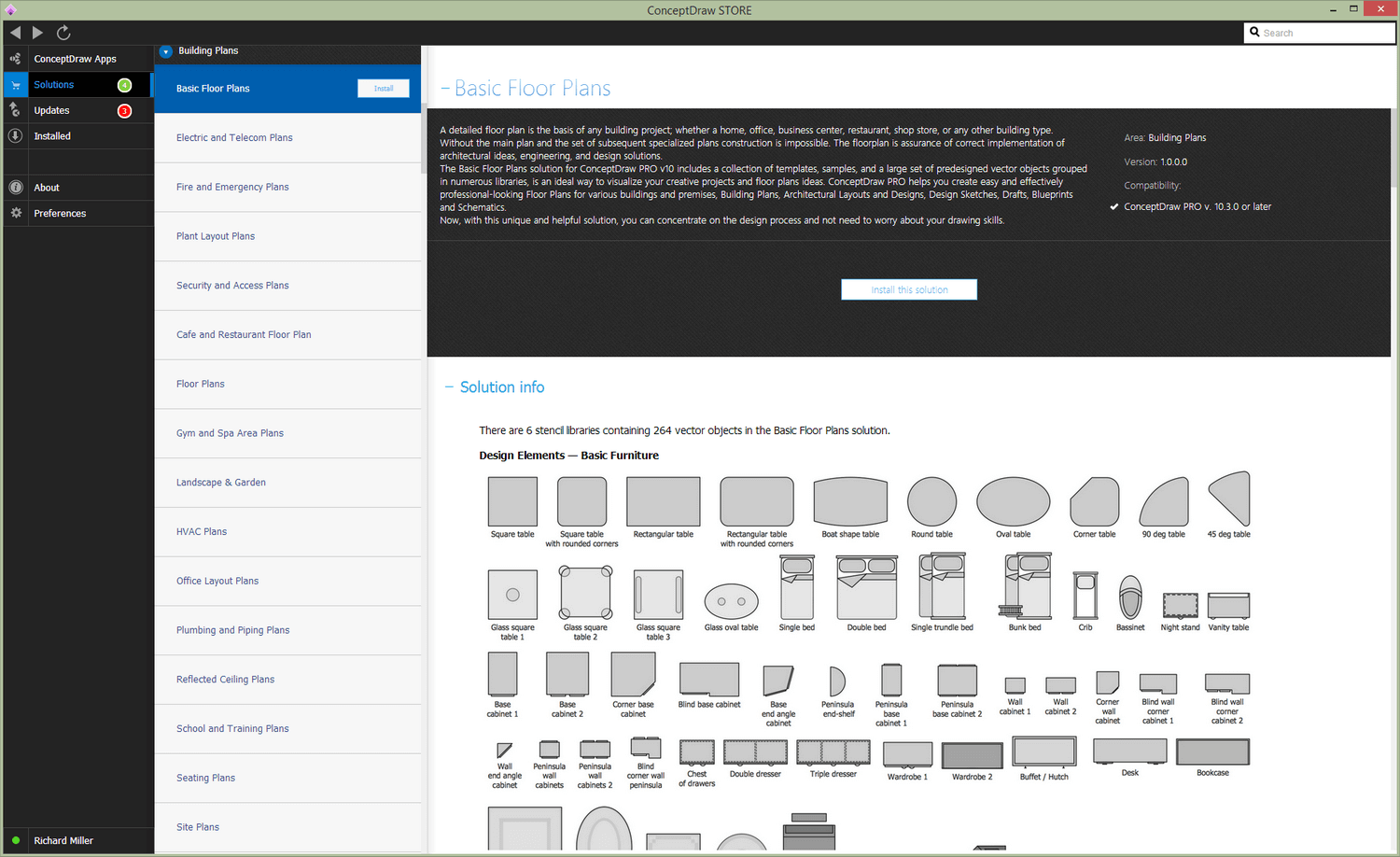 After ConceptDraw STORE and ConceptDraw DIAGRAM are downloaded and installed, you can install the Basic Floor Plans solution from the ConceptDraw STORE.