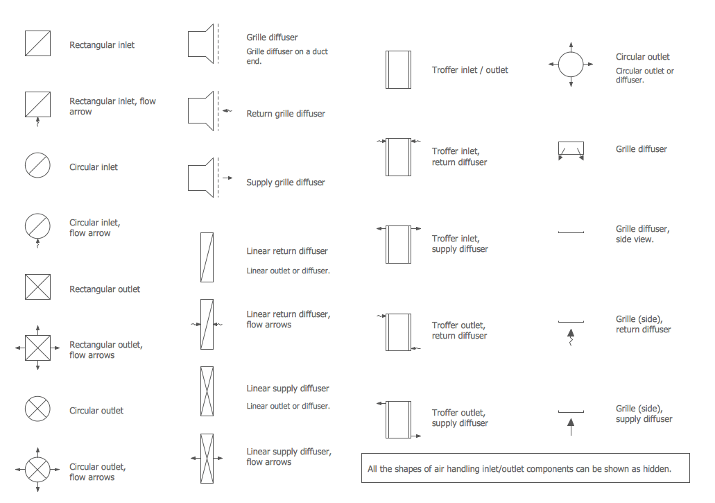 There are 7 stencil libraries containing 284 objects and 10 examples in the HVAC Plans solution.