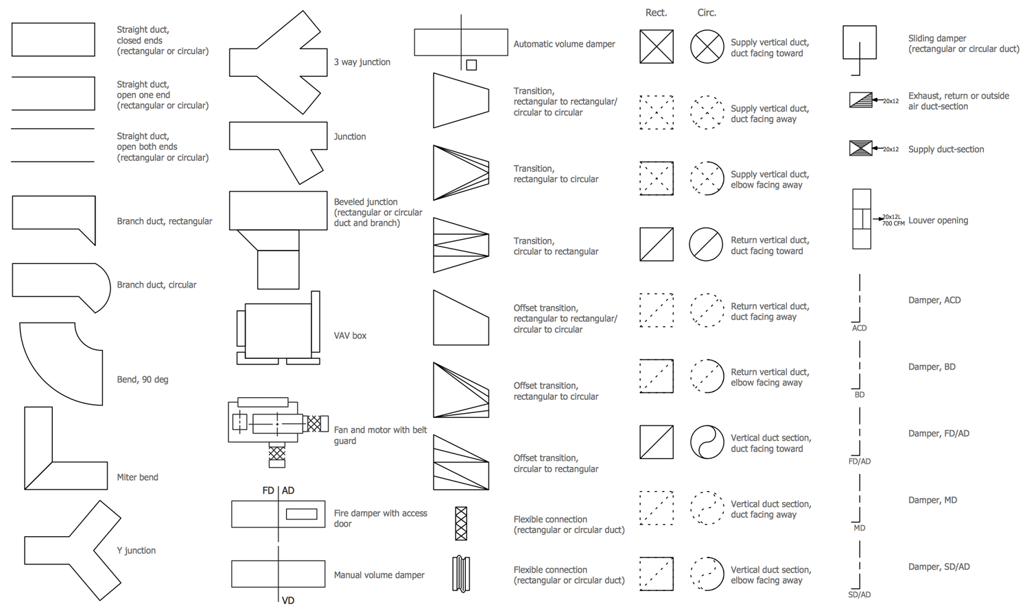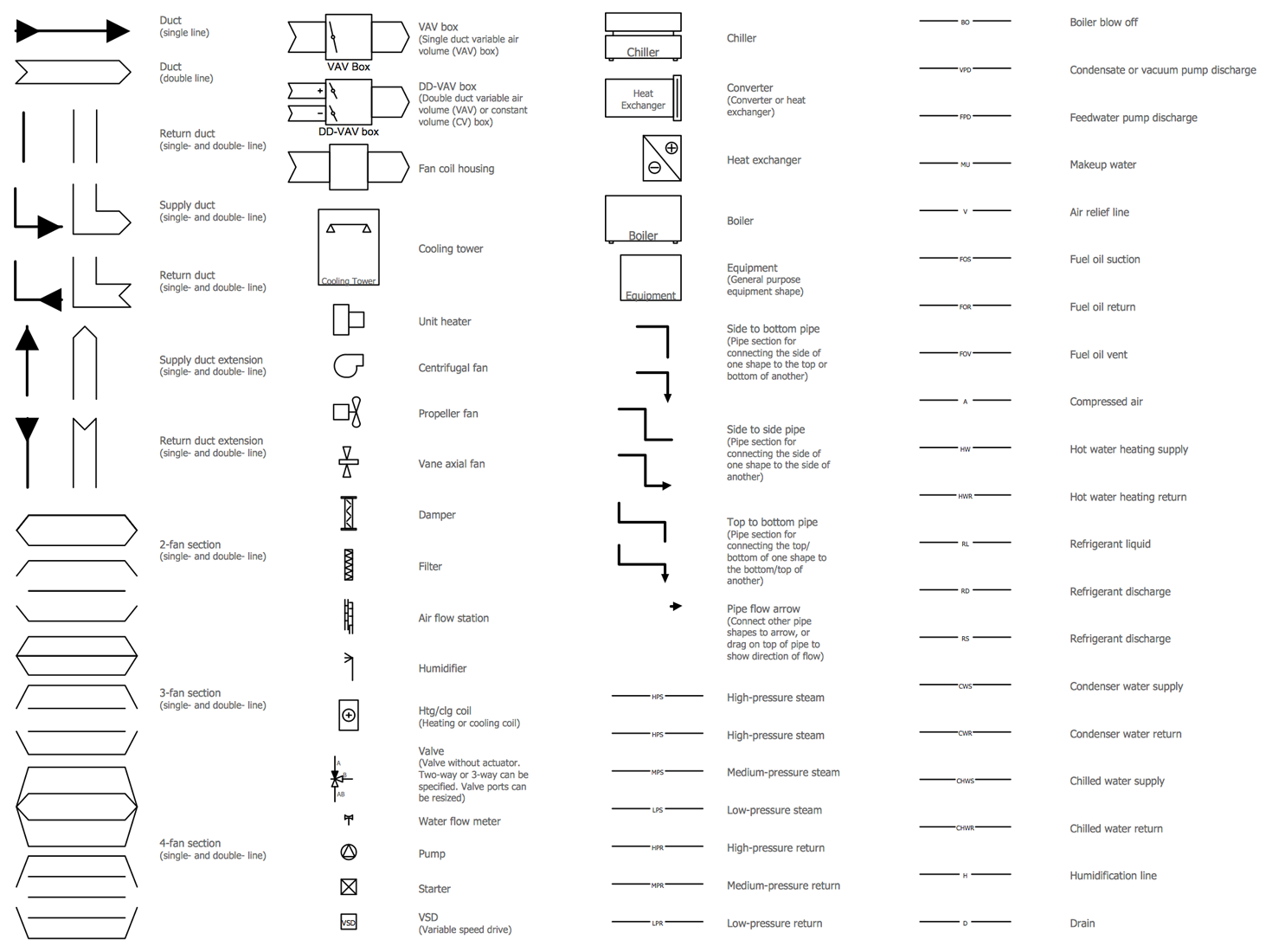 All source documents are vector graphic documents which are always available for modifying, reviewing and/or converting to many different formats, such as MS PowerPoint, PDF file, MS Visio, and many other graphic ones from the ConceptDraw Solution Park or ConceptDraw STORE. The HVAC Plans solution is available to all ConceptDraw DIAGRAM users to get installed and used while working in the ConceptDraw DIAGRAM diagramming and drawing software.