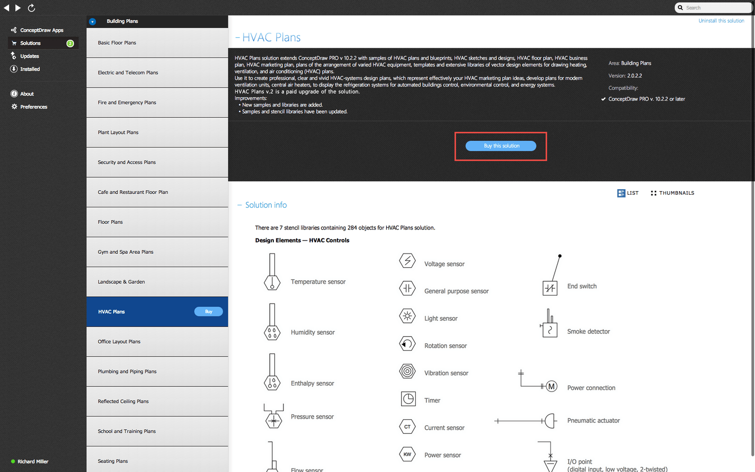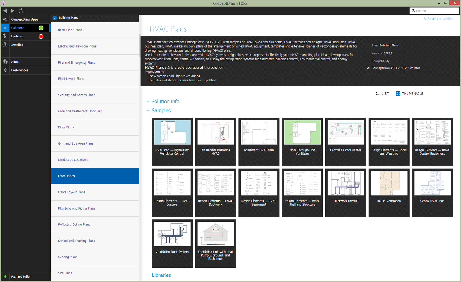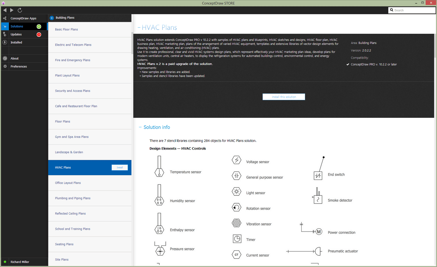 After ConceptDraw DIAGRAM is installed, the HVAC Plans solution can be purchased either from the Building Plans area of ConceptDraw STORE itself or from our online store. Thus, you will be able to use the HVAC Plans solution straight after.