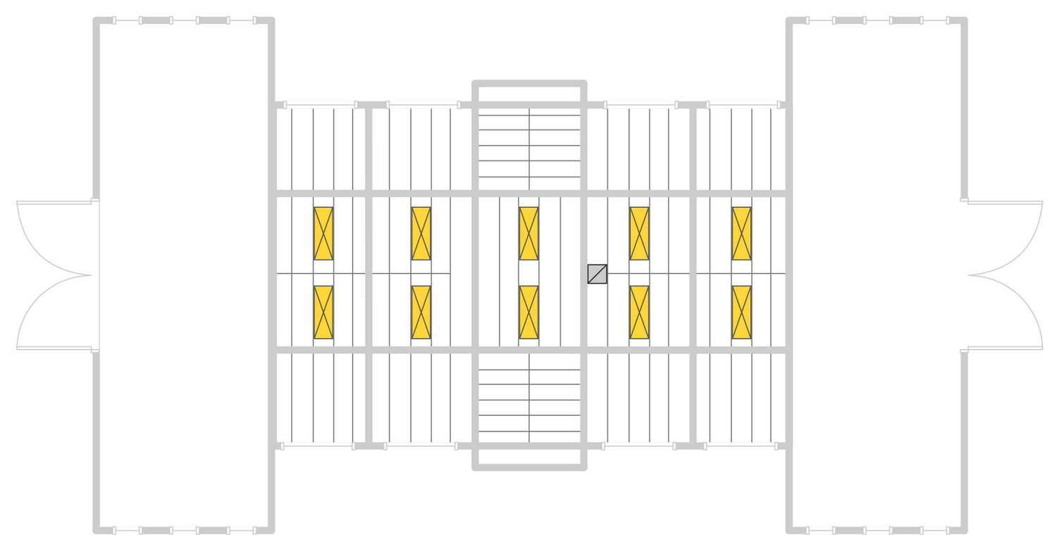 This sample represents the Reflected Ceiling Plan (RCP) demonstrating the skylights layout in a Studio space. Having as the base the Reflected Ceiling Plan from the website of the University of Idaho, it has now become quickly to design in the ConceptDraw DIAGRAM application using the ready-made objects from the Reflected Ceiling Plans solution libraries and looks strict, clear and symmetric. On both sides of the gable roof between the roof rafters, there are located the skylights at the same distance, five at each side, strictly one opposite one from the other side. Reflective ceiling plan of any home, office, or studio lodgment designed with the Reflected Ceiling Plans Solution for ConceptDraw DIAGRAM software — there is nothing faster or easier. Moreover, you can step all stages in ConceptDraw DIAGRAM, from the construction detailed plan of your apartment, office, or other premises on a blank sheet, and then point on it the reflective ceiling scheme.