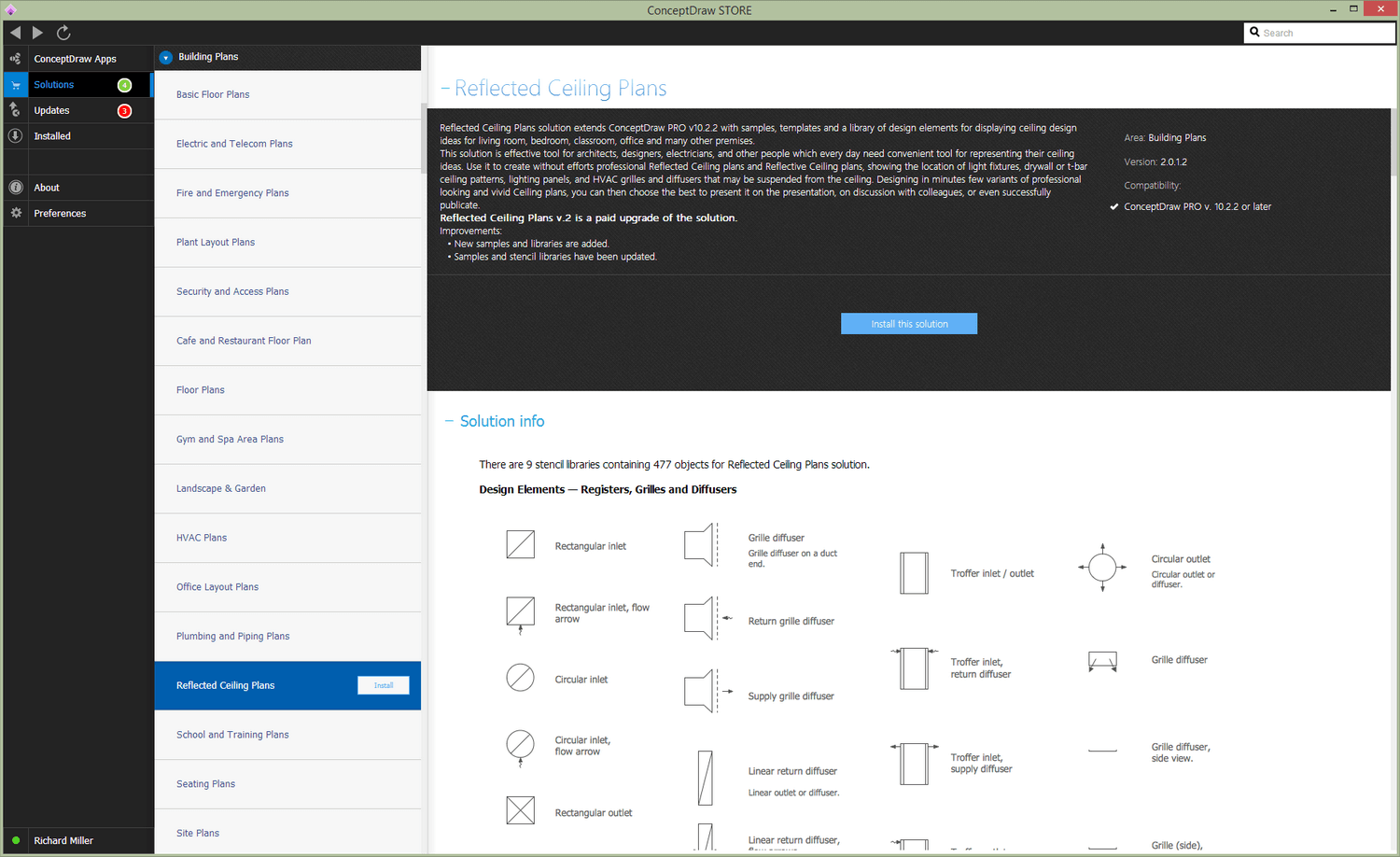 After ConceptDraw DIAGRAM is installed, the Reflected Ceiling Plans solution can be purchased either from the Building Plans area of ConceptDraw STORE itself or from our online store. Thus, you will be able to use the Reflected Ceiling Plans solution straight after.