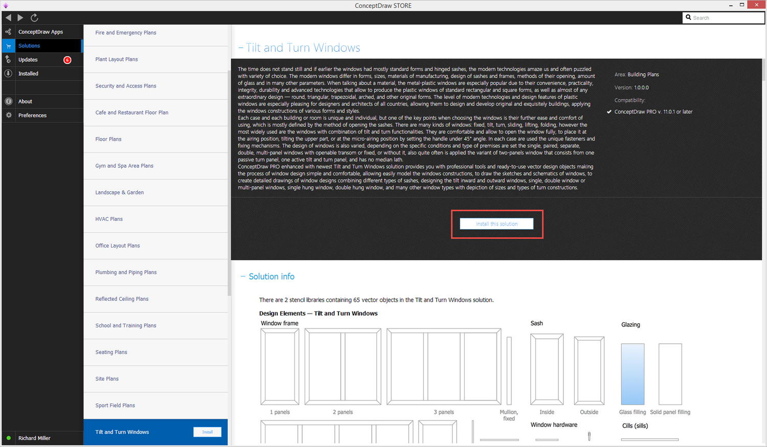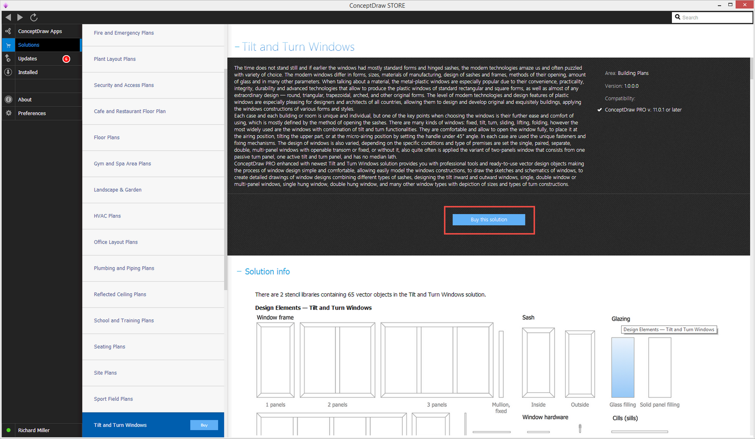 After ConceptDraw DIAGRAM is installed, the Tilt and Turn Windows solution can be purchased either from the Building Plans area of ConceptDraw STORE itself or from our online store. Thus, you will be able to use the Tilt and Turn Windows solution straight after.