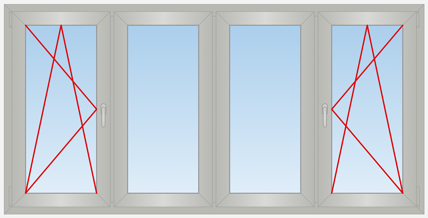 The glazing of windows is applied already very long time, the modern technologies provide huge choice of window designs and types of glazing, with varied colors of glass, with clear or tinted glass, laminated glass, retro-reflective, energy saving, tempered glass, etc. Besides, the modern metal-plastic window can contain single, double, or even triple glazing units. This example shows the outside view of four-panel window with two tilt and turn panels.