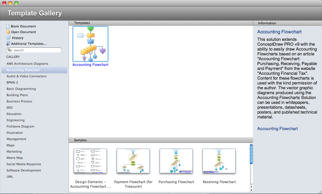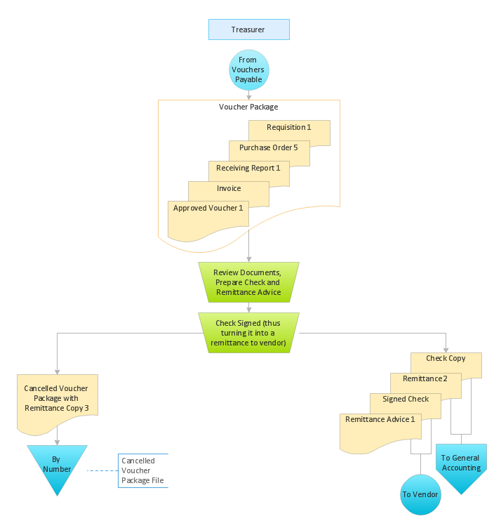 There are a few samples that you see on this page which were created in the ConceptDraw DIAGRAM application by using the Accounting Flowcharts solution. Some of the solution's capabilities as well as the professional results which you can achieve are all demonstrated here on this page.
