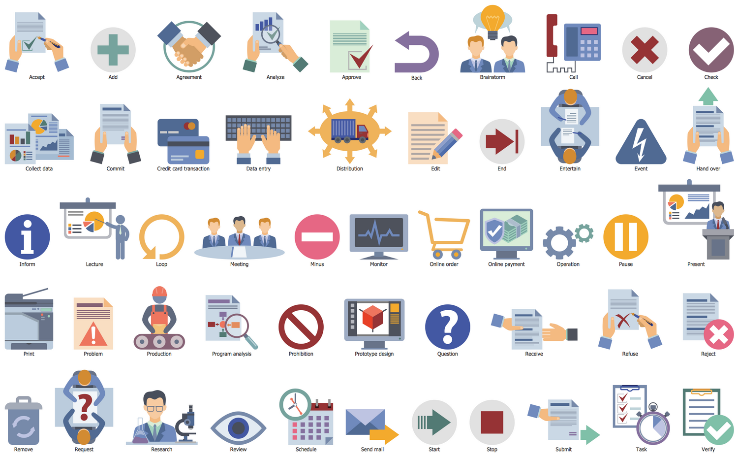 Achieve a success in business analysis, documenting complex business processes and process flows, business process optimization and drawing Business Process Workflow Diagram, Business Process Flow Diagram, schematics, flowcharts, and infographics with Business Process Workflow Diagrams solution for ConceptDraw DIAGRAM software.