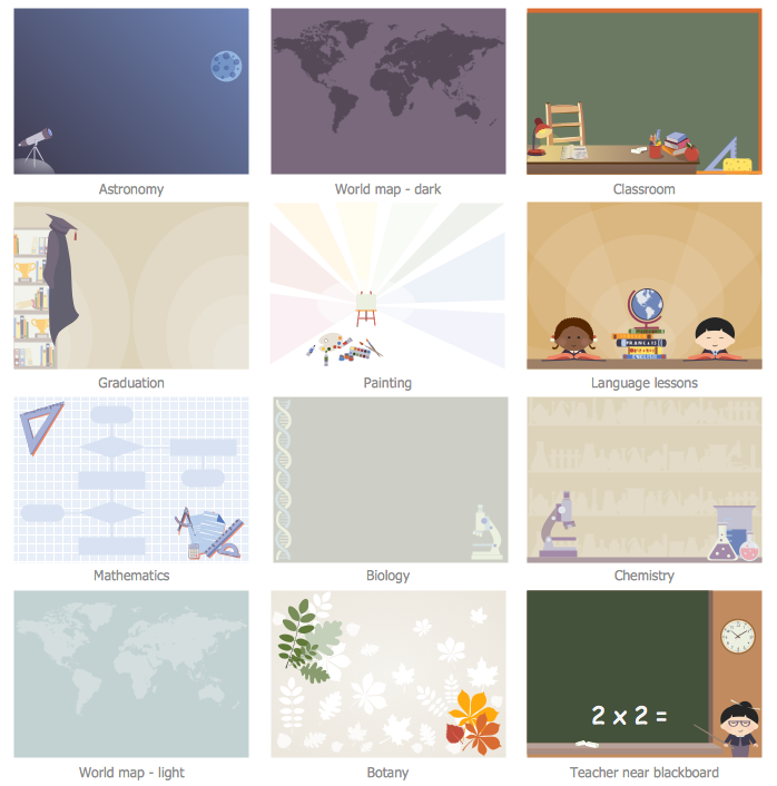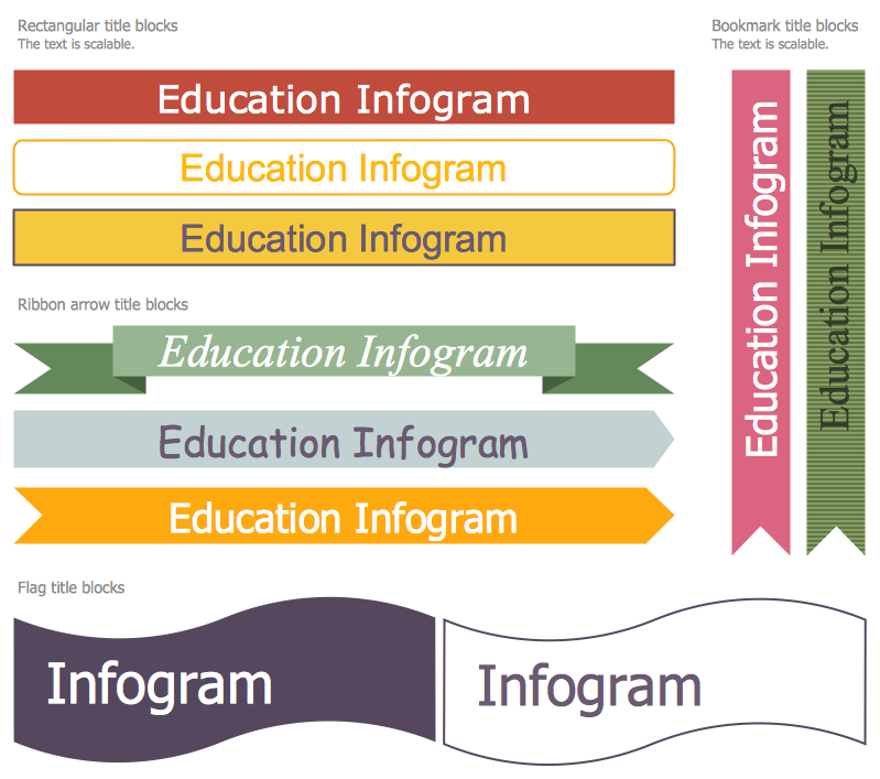 There are 14 stencil libraries containing 404 vector objects and 10 examples in the Education Infographics solution.