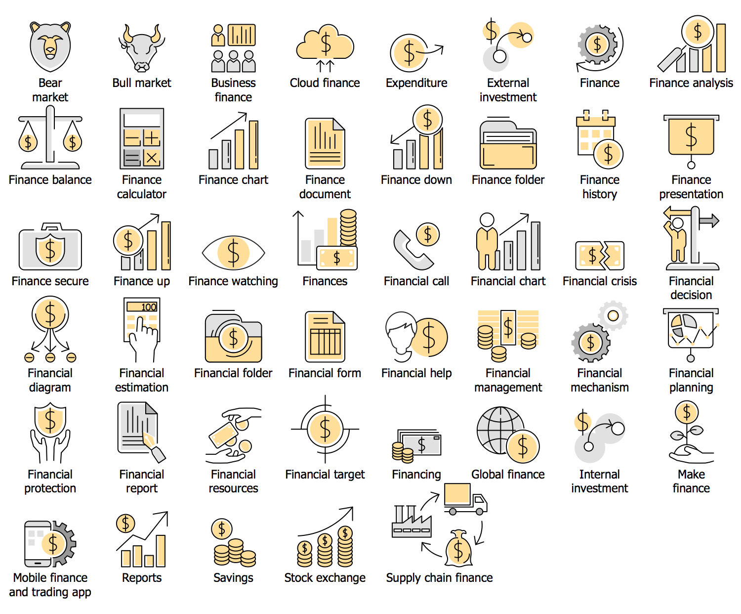 Accelerate your success in visualization of financial data and statistics, and vivify your financial reports, presentations and analytic documents with modern and convenient financial infographics drawing tools of Financial Infographics solution.