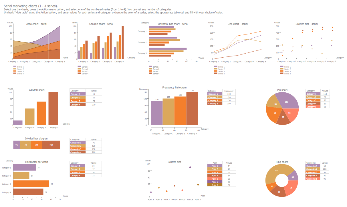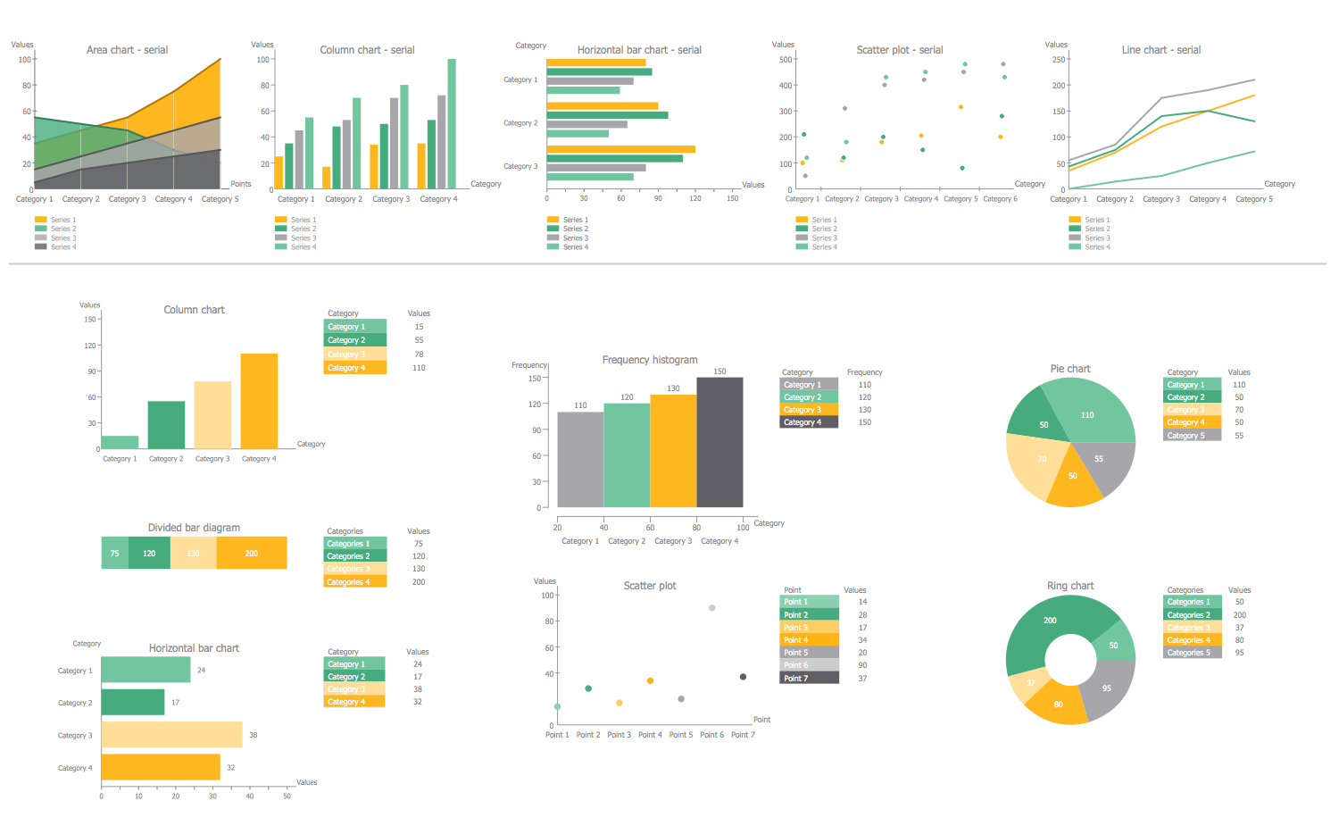 Management Infographics, Education Infographics, Financial Infographics, Business Process Workflow Diagrams, Marketing Infographics, 25 Typical Orgcharts, HR Flowcharts, Stakeholder Onion Diagrams, Funnel Diagrams, Seven Basic Tools of Quality, Cooking Recipes, Health Food, Area Charts, Bar Graphs, Pie Charts, Line Graphs, Divided Bar Diagrams, Histograms, Picture Graphs, Scatter Diagrams.