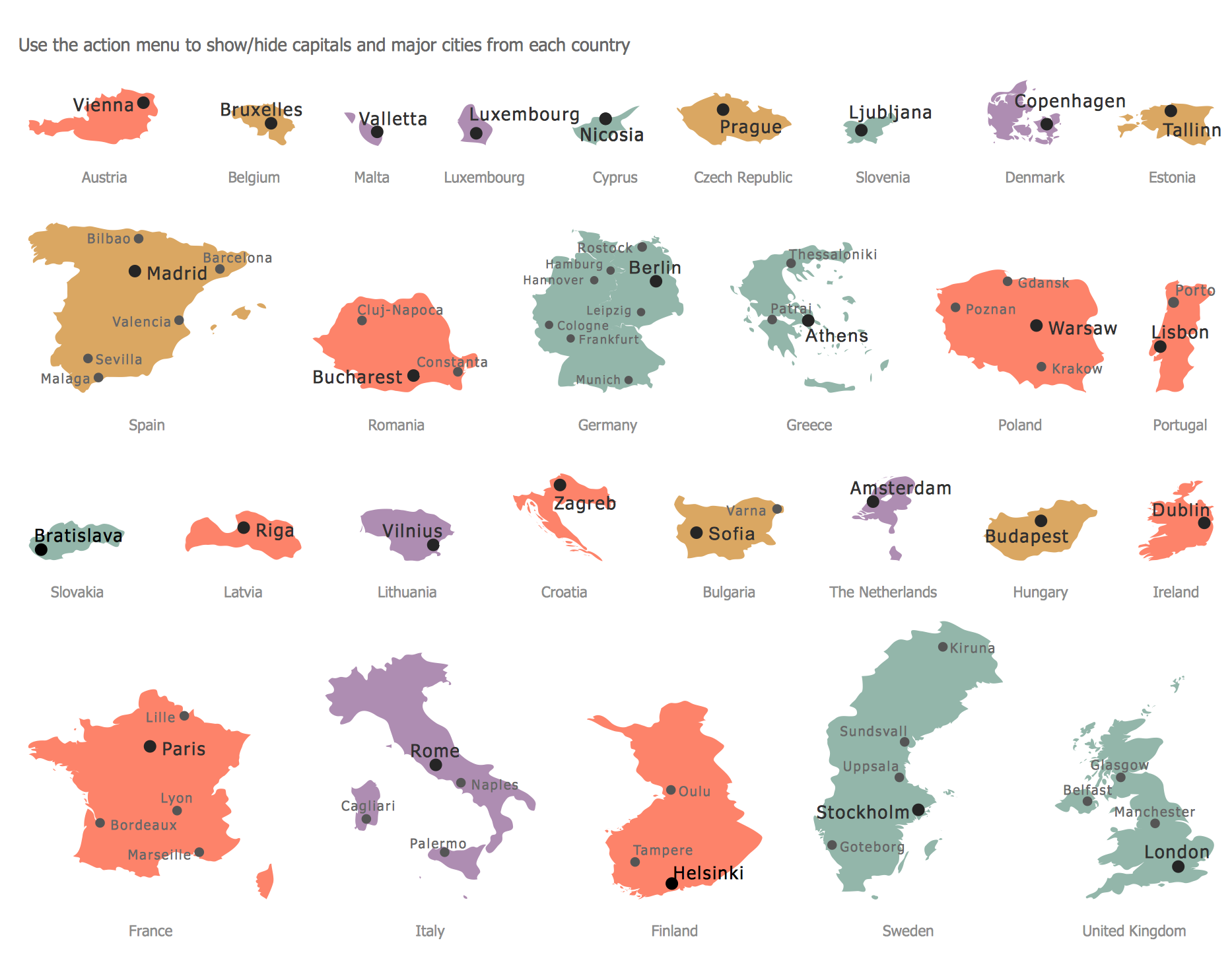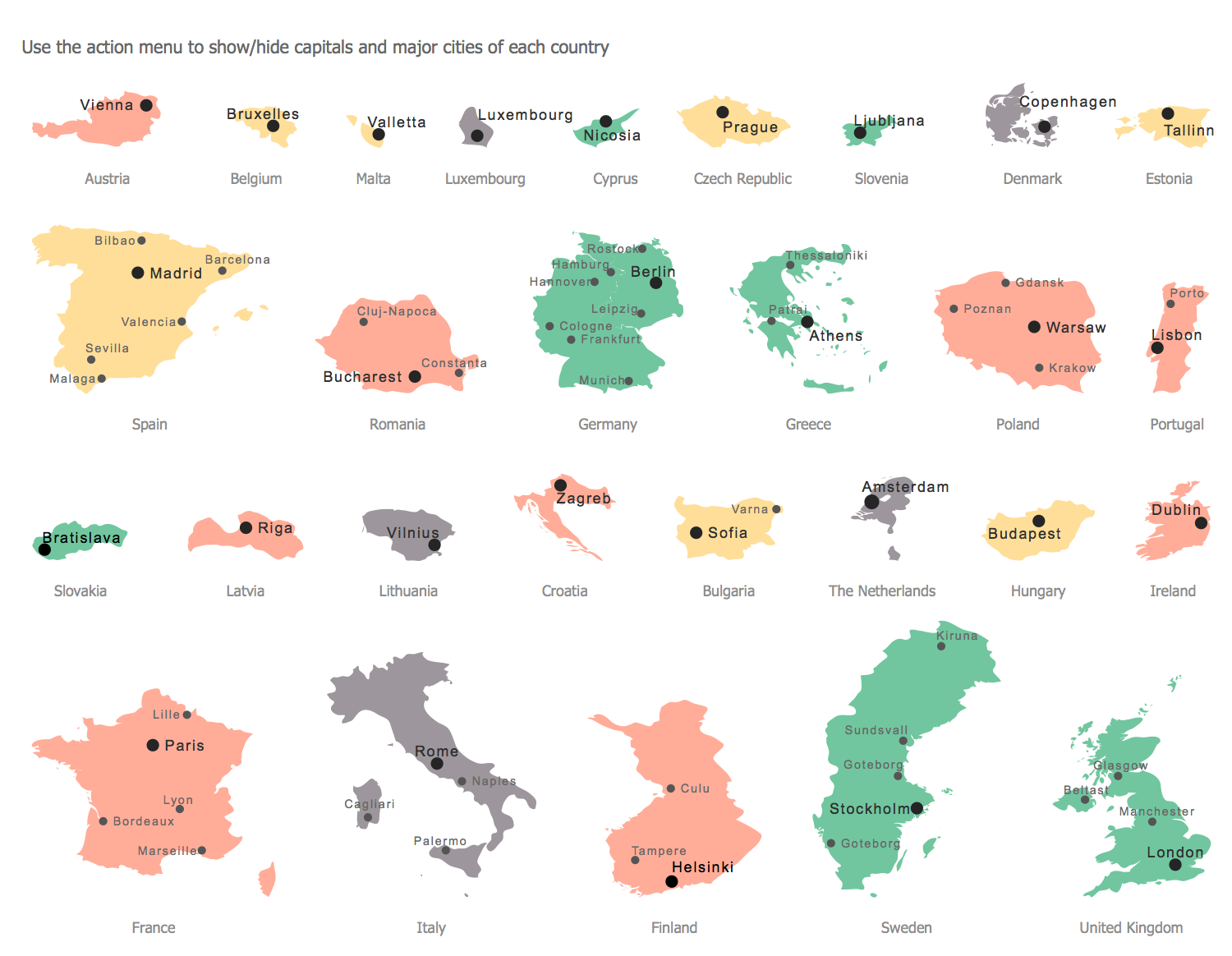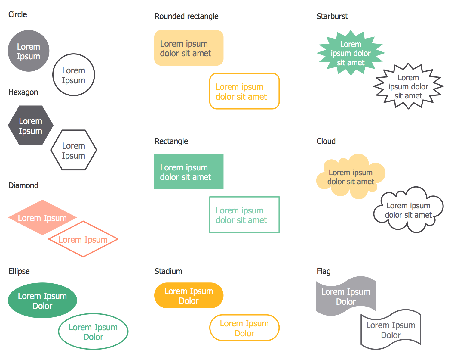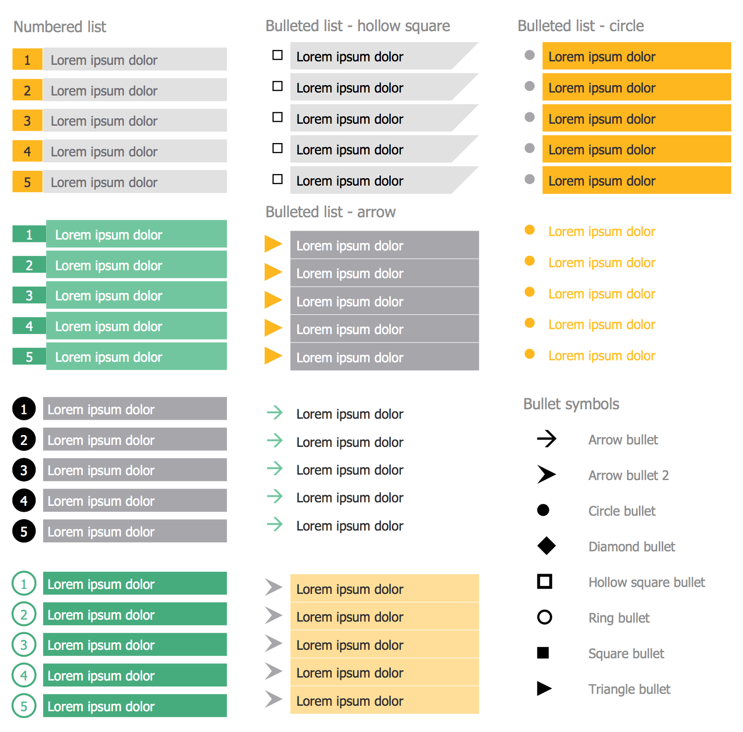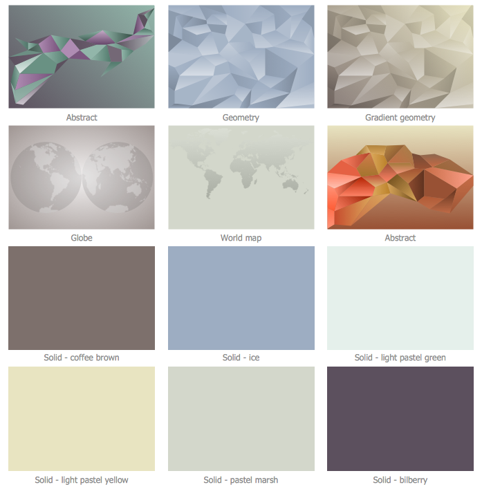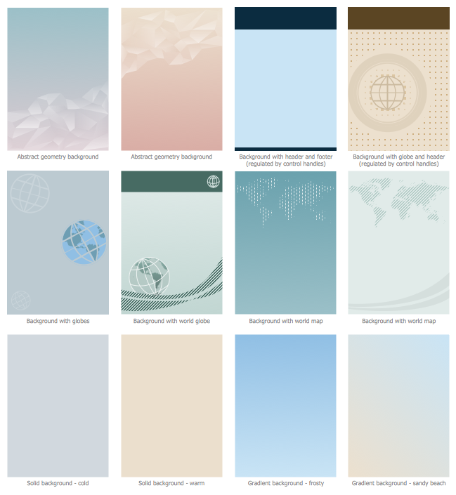 This solution contains 25 templates and 2 libraries containing 40 vector graphics and icons, to allow you to create professional looking documents.