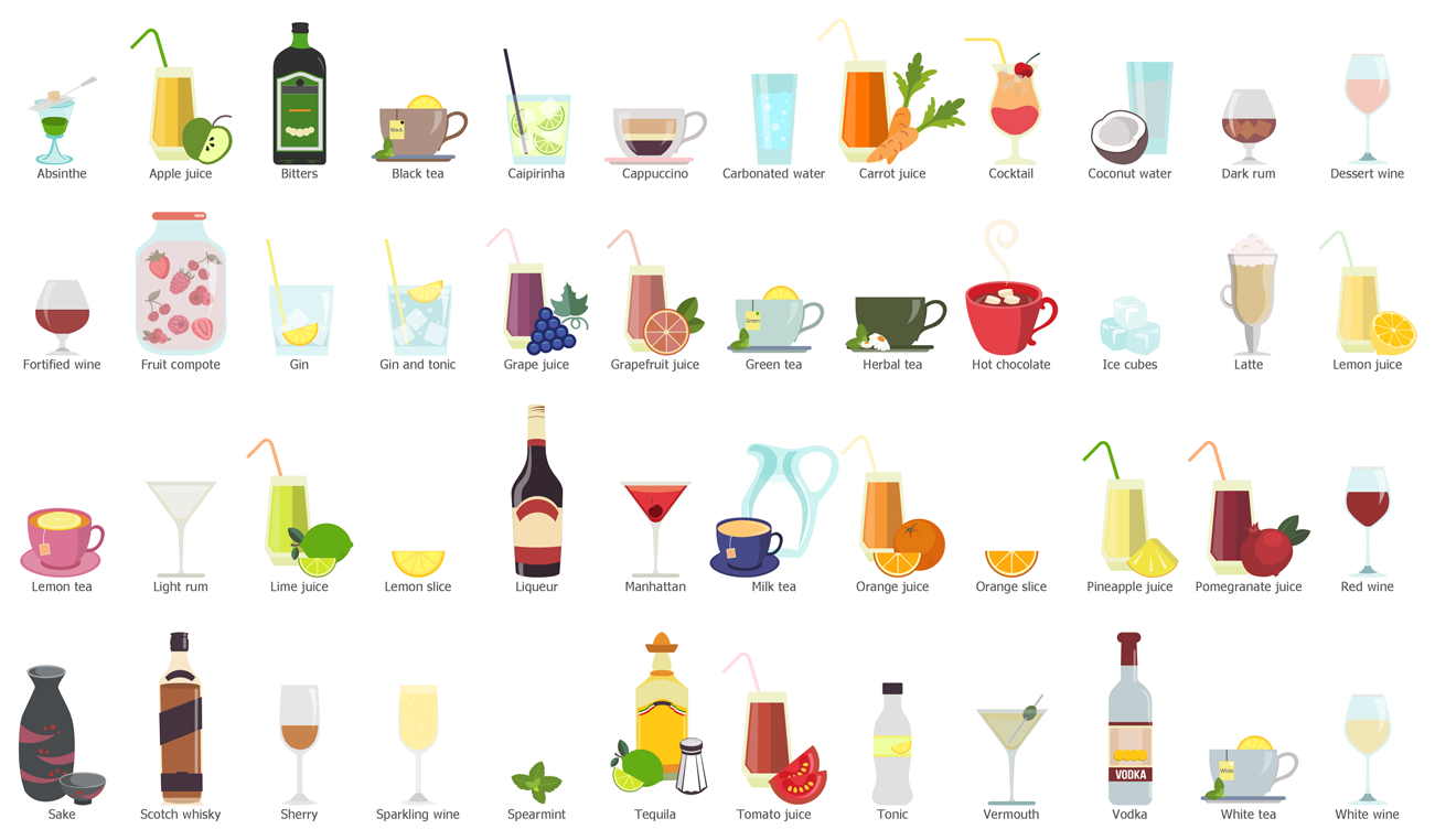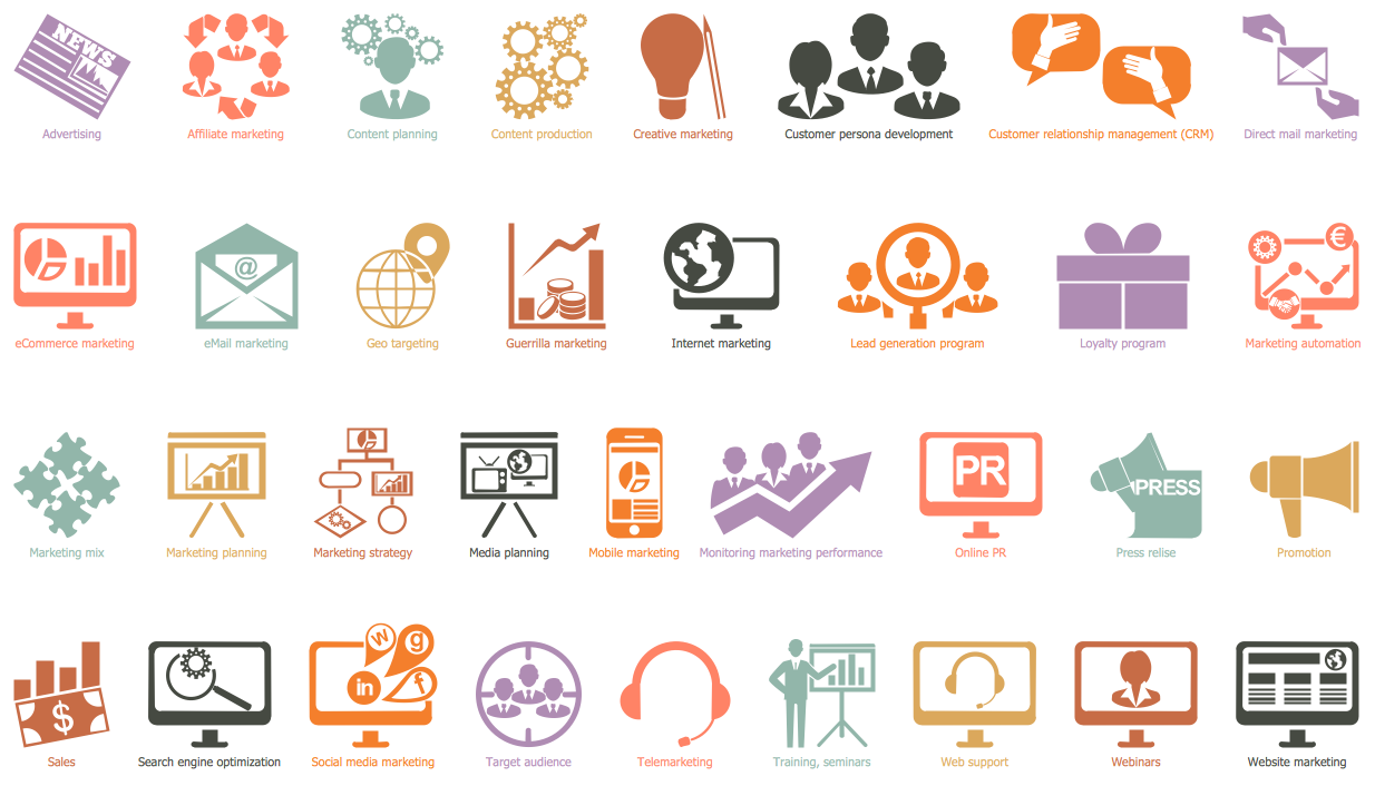 Education infographics, Education infograms, Financial infographics, Financial maps, Financial illustrations, Business process workflow diagrams, Cooking recipes illustrations, Cooking infographics, Health food images, Healthy diet illustrations, Marketing infographics, Marketing infograms, Marketing charts, Marketing maps, Market research diagrams, Organizational charts, Hierarchic organizational charts, Matrix organizational charts, HR flowcharts, Stakeholder onion diagrams, Horizontal funnel diagrams, Vertical funnel diagrams, AIDA models, Quality diagrams, Quality histograms, Area charts, Bar graphs, 3D Bar graphs, Double bar graphs, Divided bar charts, Column bar charts, Pie charts, Donut charts, Arrow circle charts, Doughnut charts, Line graphs, Divided bar diagrams, Stacked diagrams, Histograms, Picture graphs, Picture bar graphs, Scatter diagrams, Scatter plot graphs.