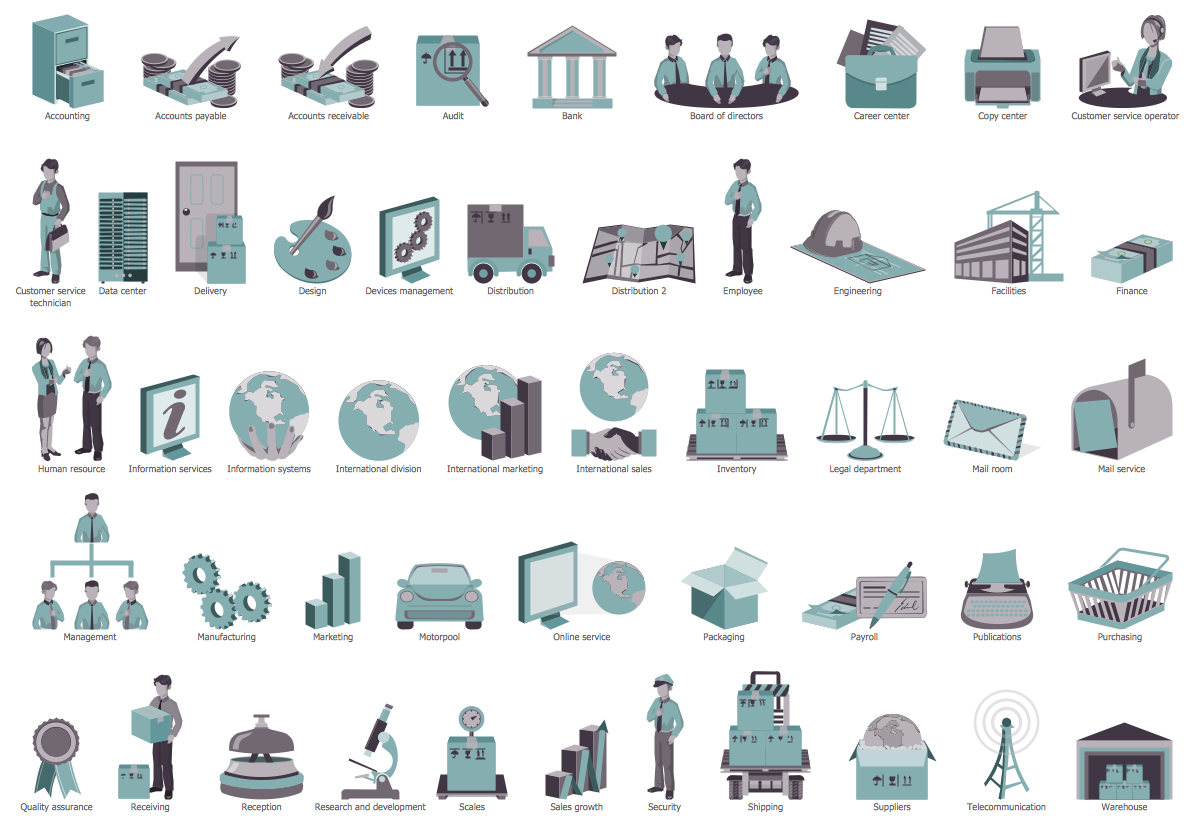 Whatever the size, scope or structure of your business, the 25 Typical Orgcharts solution gives you the tools to professionally chart an organization's hierarchy. 25 distinct templates means you won't be lacking for inspiration.