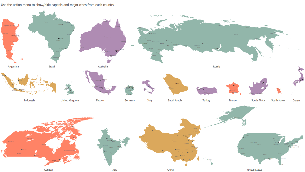 There are 20 stencil libraries containing 526 vector objects and 15 examples in the Financial Infographics solution.