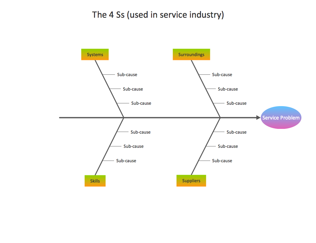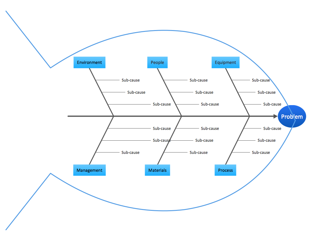 This template diagram is created using the "Fishbone Diagram" Solution. It contains a typical structure you can fill-in to get started with a Fishbone Diagram. There are callout tips on the template so you can get quickly started.