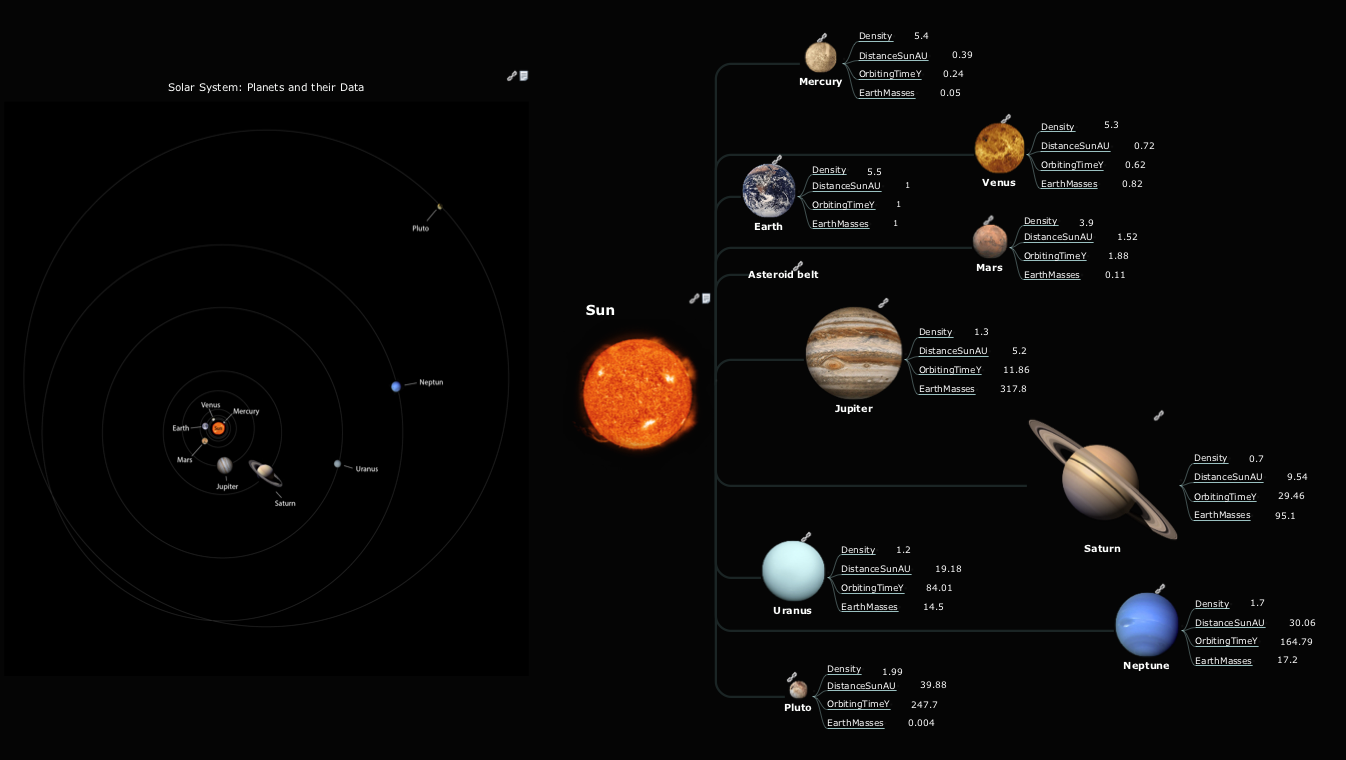 Another example of the graphical capabilities of ConceptDraw MINDMAP Each planet is set as a topic, with the various physical statistics set as sub-topics.