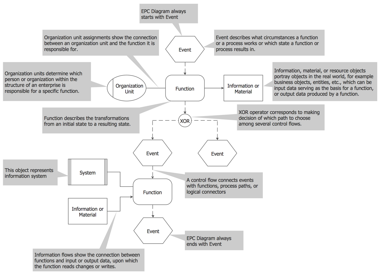 There are a few samples that you see on this page which were created in the ConceptDraw DIAGRAM application by using the Basic EPC Diagrams solution. Some of the solution's capabilities as well as the professional results which you can achieve are all demonstrated here on this page.