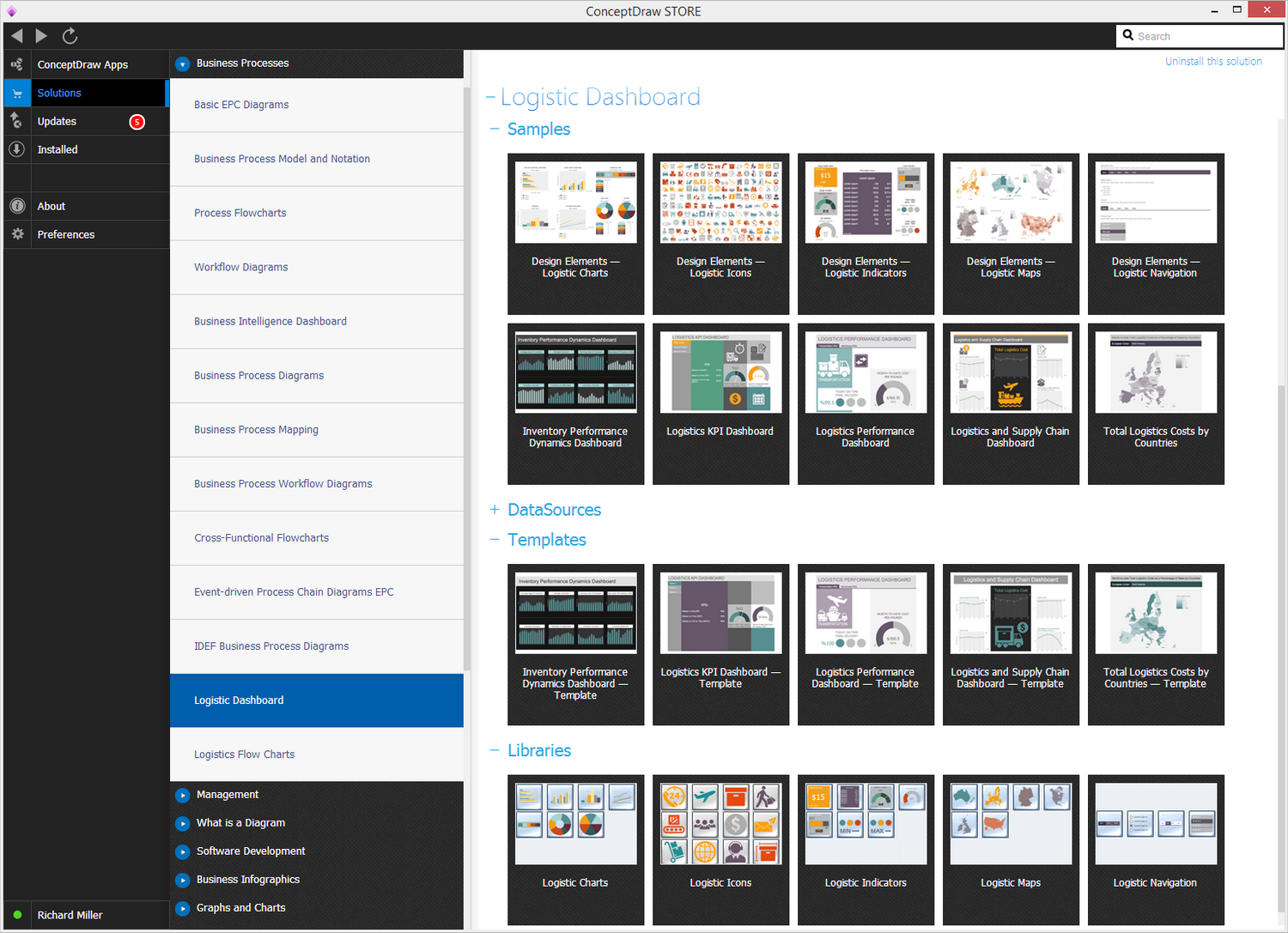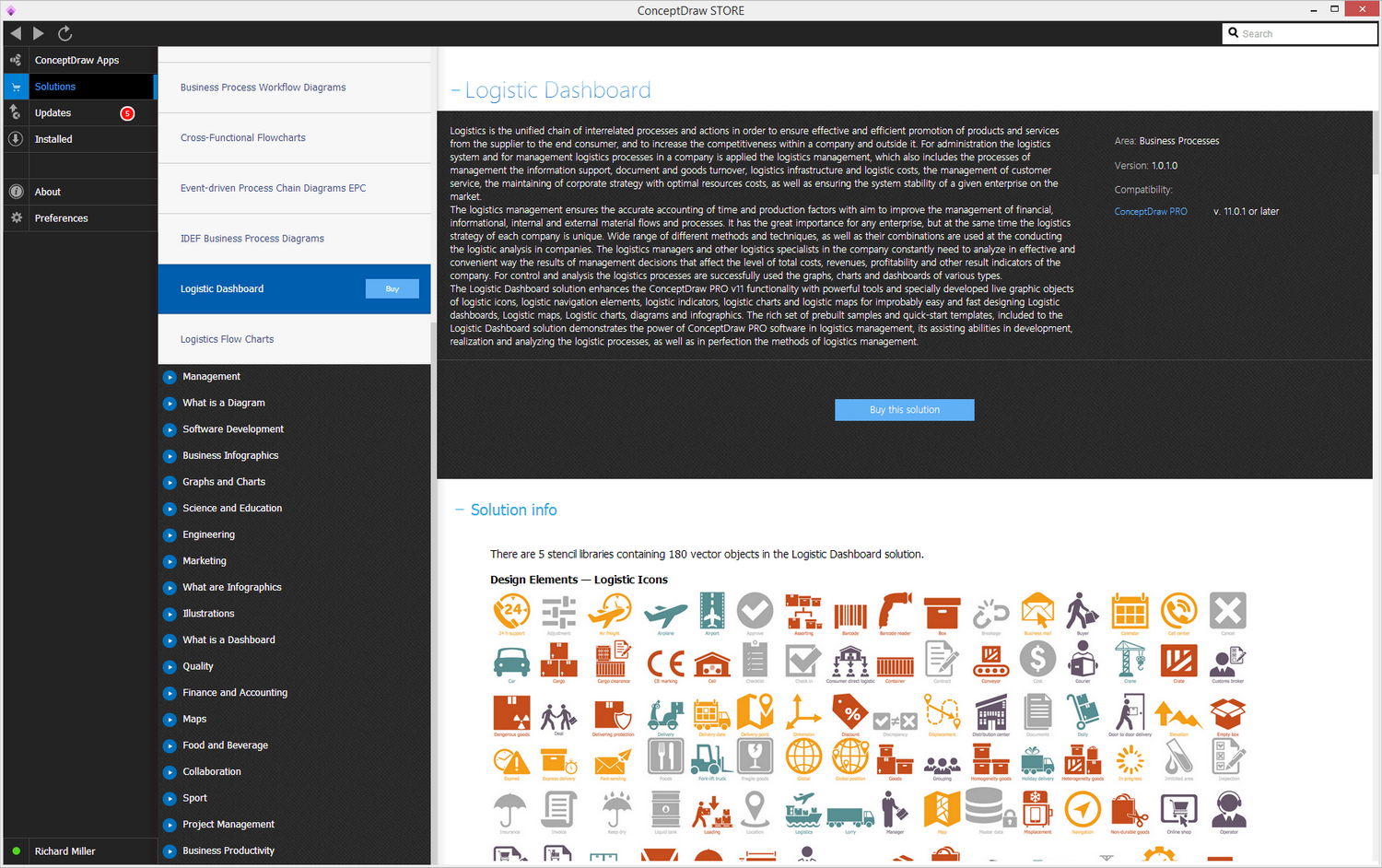 After ConceptDraw DIAGRAM is installed, the Logistic Dashboard solution can be purchased either from the Business Processes area of ConceptDraw STORE itself or from our online store. Thus, you will be able to use the Logistic Dashboard solution straight after.