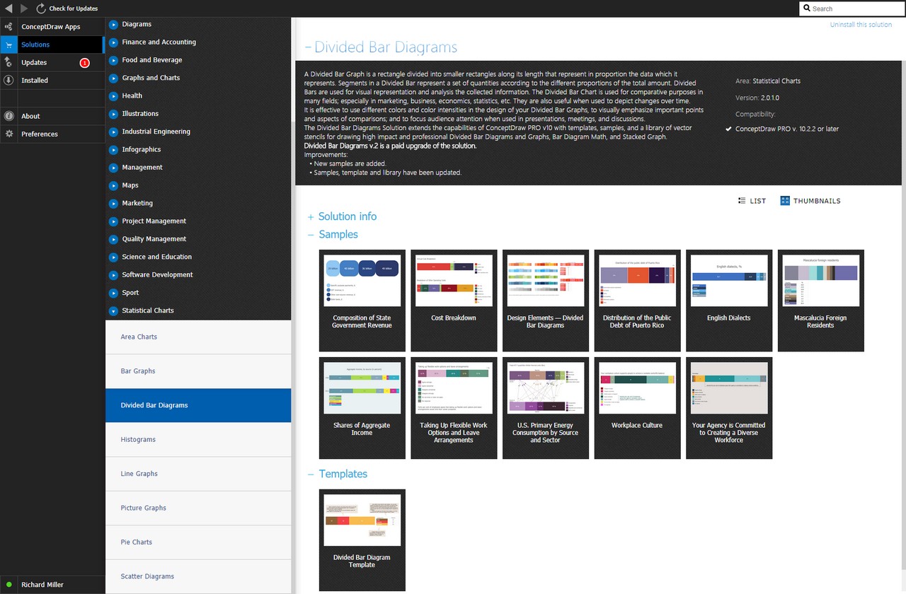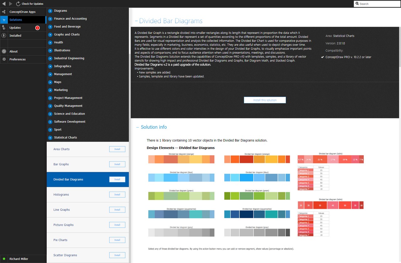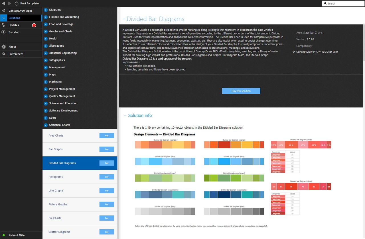 After ConceptDraw DIAGRAM is installed, the Divided Bar Diagrams solution can be purchased either from the Statistical Charts area of ConceptDraw STORE itself or from our online store. Thus, you will be able to use the Divided Bar Diagrams solution straight after.