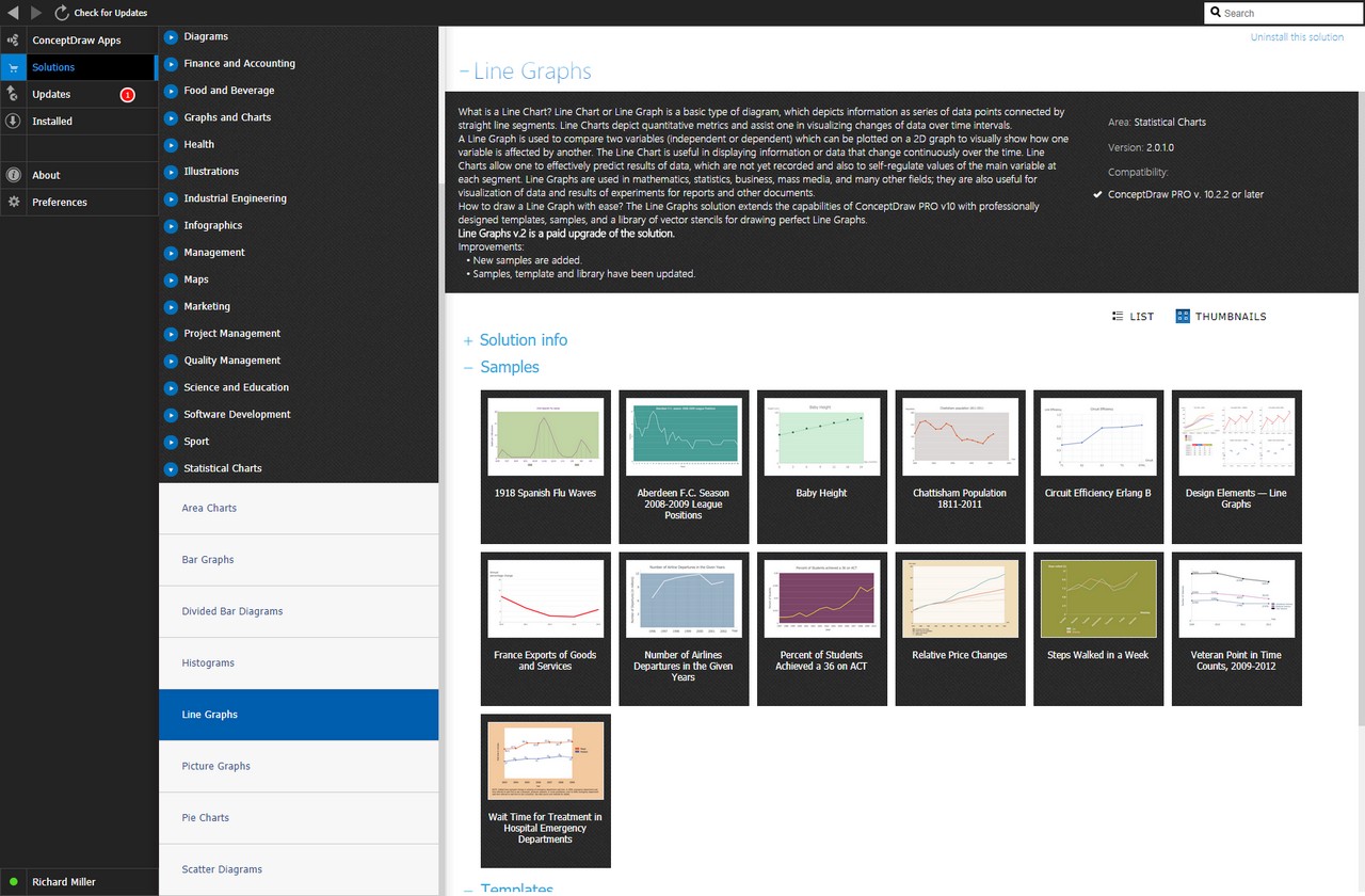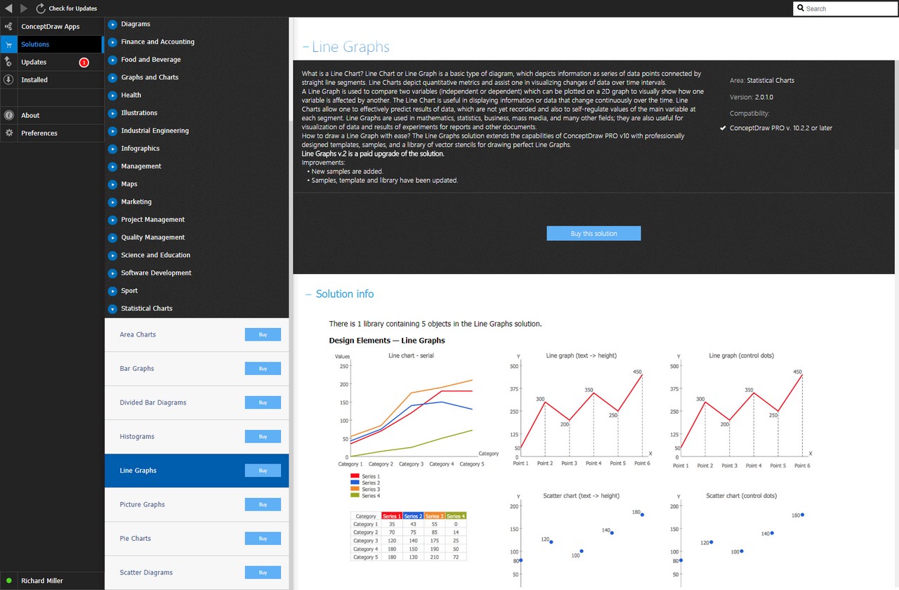 After ConceptDraw DIAGRAM is installed, the Line Graphs solution can be purchased either from the Graphs and Charts area of ConceptDraw STORE itself or from our online store. Thus, you will be able to use the Line Graphs solution straight after.