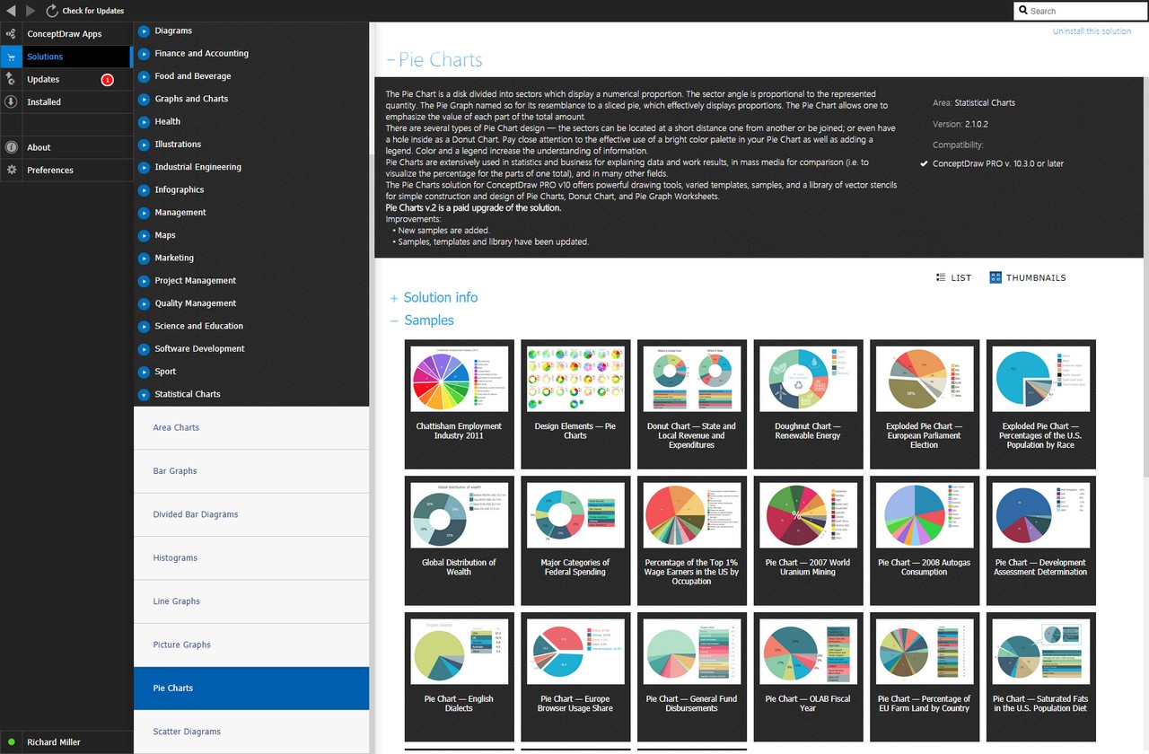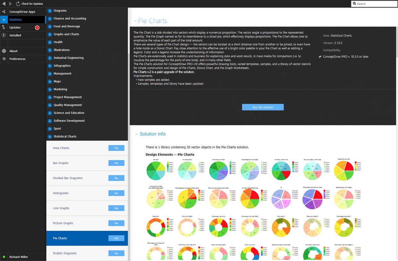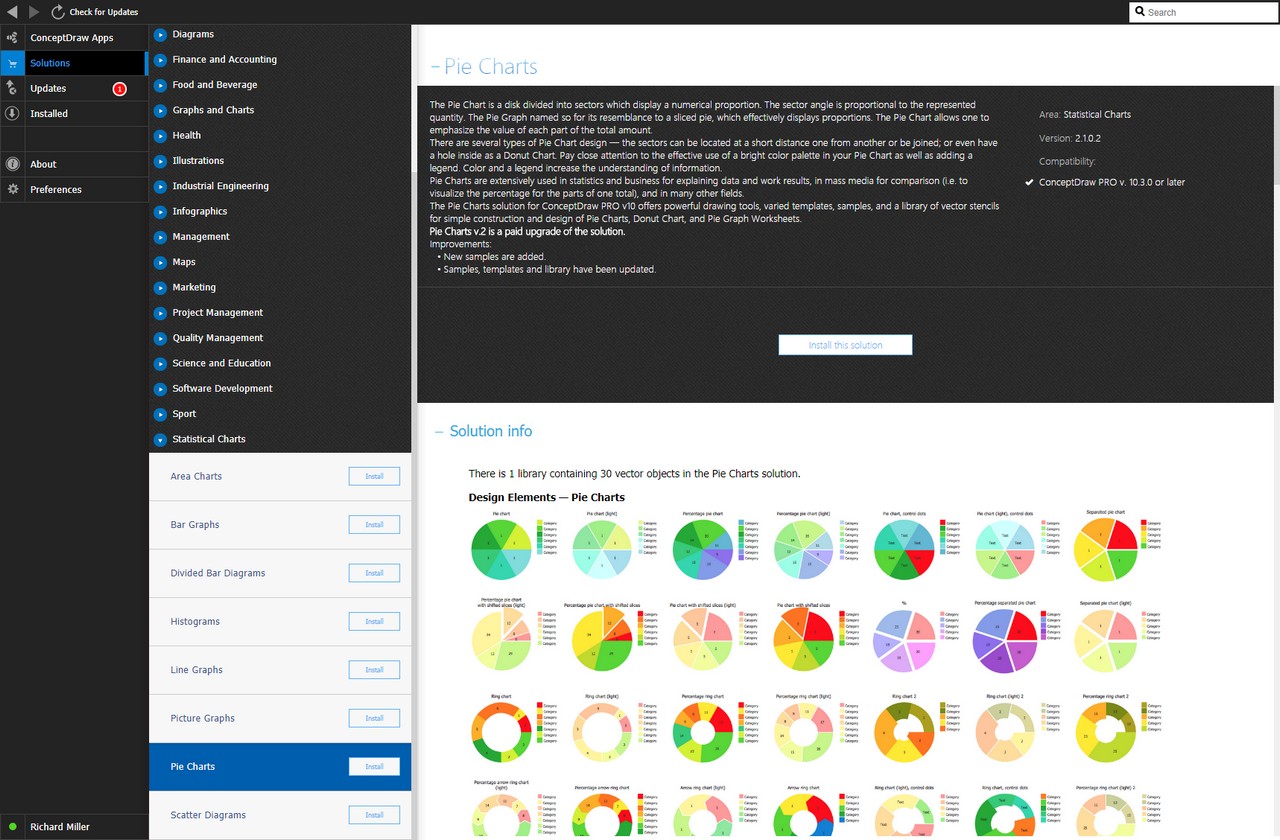 After ConceptDraw DIAGRAM is installed, the Pie Charts solution can be purchased either from the Graphs and Charts area of ConceptDraw STORE itself or from our online store. Thus, you will be able to use the Pie Charts solution straight after.