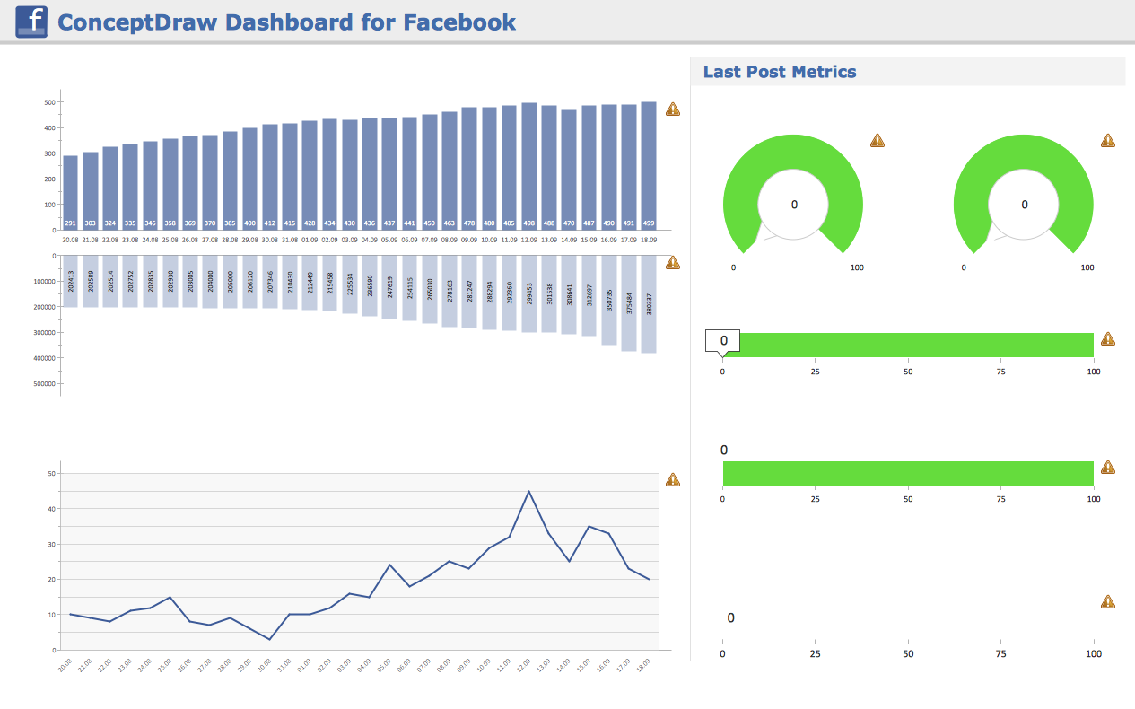 ConceptDraw DIAGRAM and the “ConceptDraw Dashboard for Facebook” solution found in the Collaboration Area of ConceptDraw Solution Park are all you need to get started. Make sure both are installed on your computer.