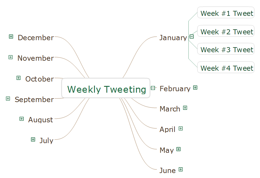 The samples you see on this page are maps of tweets created in ConceptDraw MINDMAP to demonstrate how you can use mind maps when working with Twitter - from planning a Twitter campaign to regular daily tweeting. All mindmaps are ready-to-tweet using the MindTweet solution.