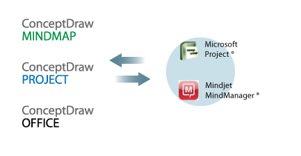 Intended For: Solution is intended for managers and teams who use ConceptDraw Products, alongside MS Project and Mindjet MindManager.