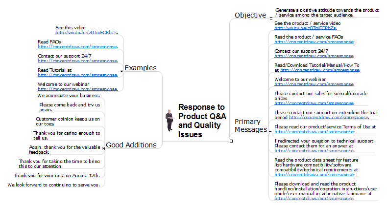This sample is an action mind map created in ConceptDraw MINDMAP It demostrates what kind of action mind maps one could use applying the Social Media Response method.
