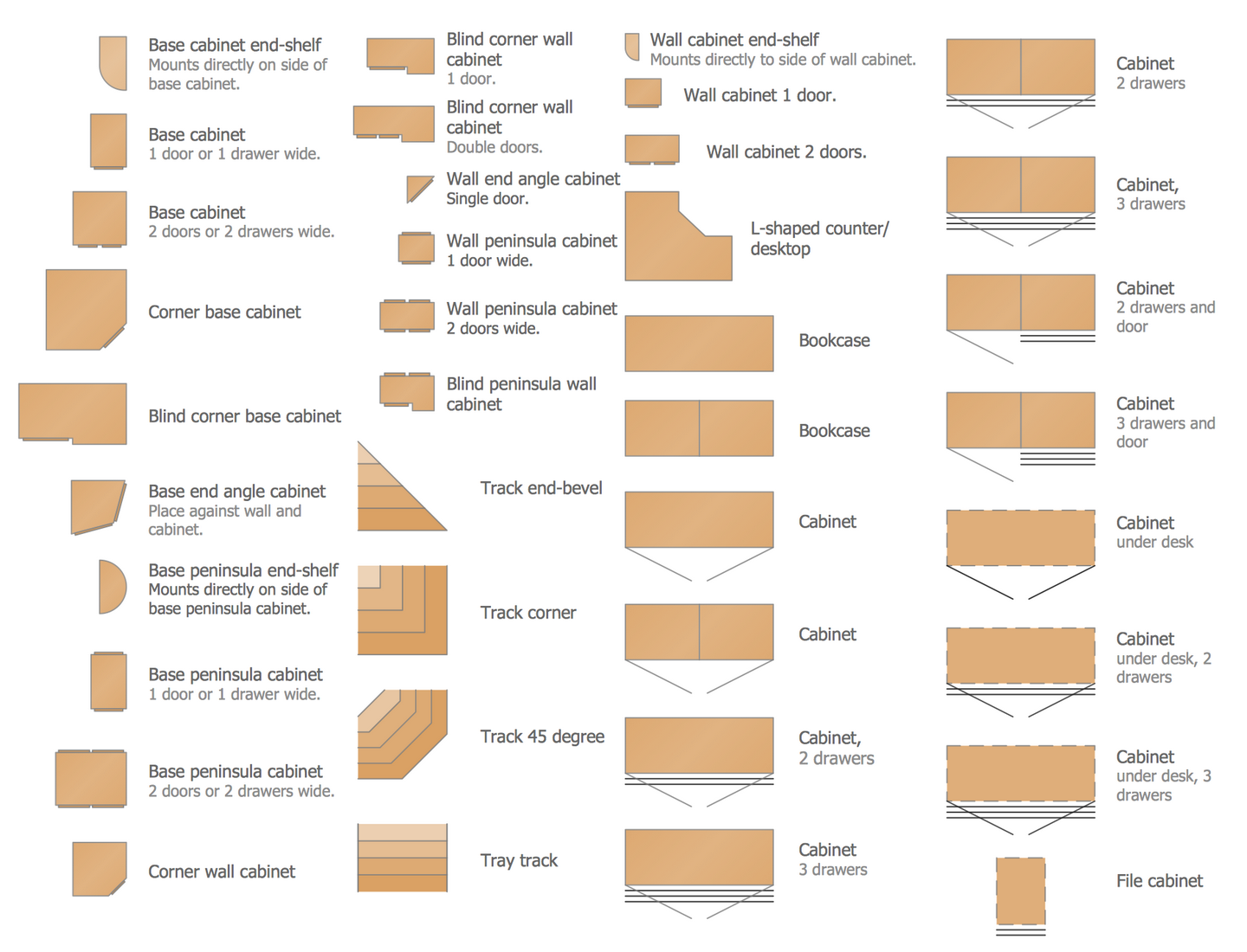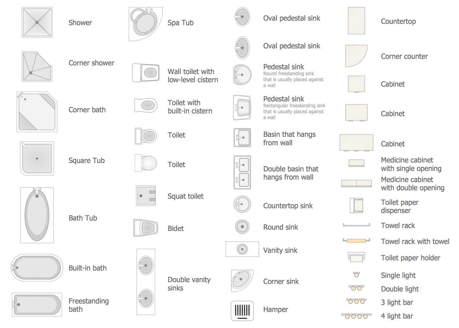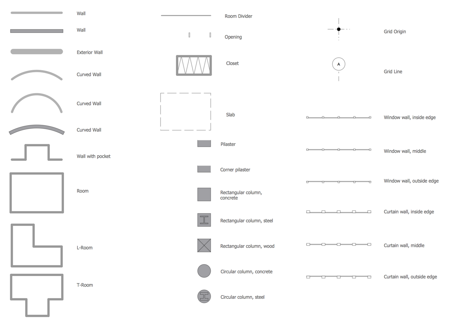 There are 15 stencil libraries containing 666 vector graphics and 11 examples in the Floor Plans solution.