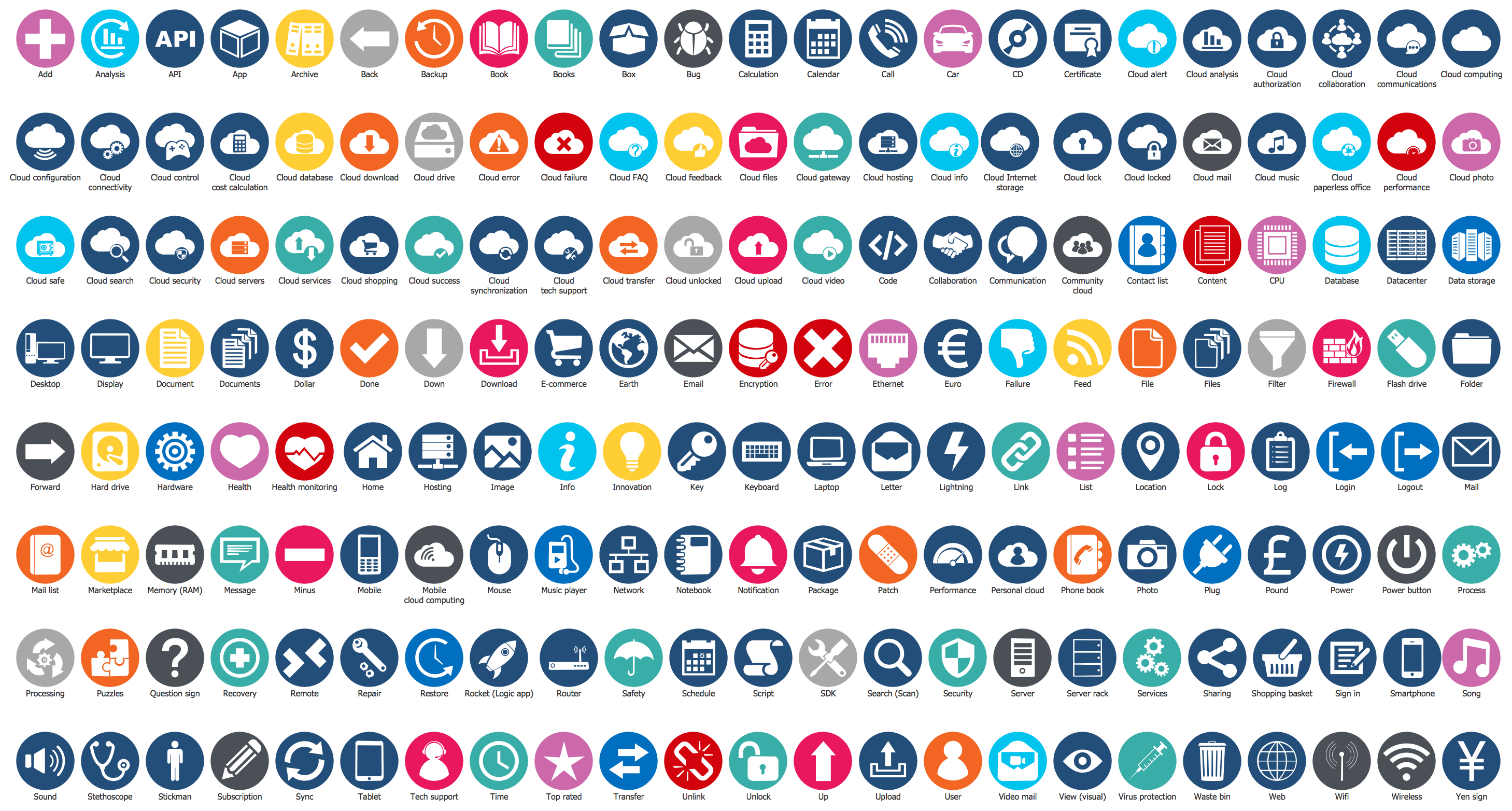 There are 4 libraries containing 492 objects and 10 examples in the Cloud Computing Diagrams solution.