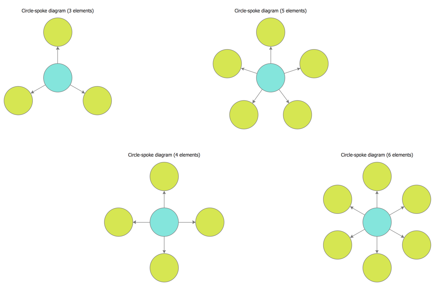 Basic Circle-Spoke Diagrams solution extends ConceptDraw DIAGRAM functionality with a library of vector stencils making it the best software for creating the Circle-Spoke Diagrams, Circle Diagrams, and Spoke Diagrams. This solution provides a visual answer of what a Сircle Spoke Diagram and Spoke Diagram are, offering a set of illustrative samples and giving a detailed introduction. Use any of included samples as a circle spoke diagram template to design a professionally looking Circle Spoke Diagram of any complexity literally in a few moments and use it in business documentation, report or simply share with colleagues.