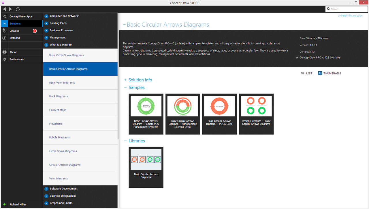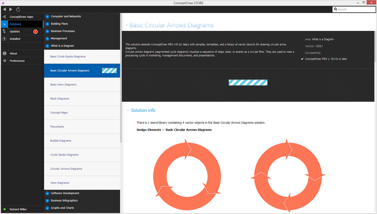 After ConceptDraw STORE and ConceptDraw DIAGRAM are downloaded and installed, you can install the Basic Circular Arrows Diagrams solution from the ConceptDraw STORE.