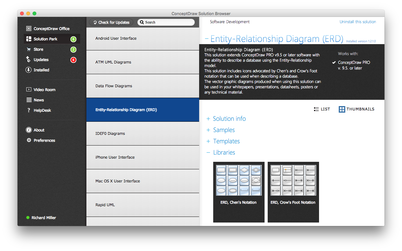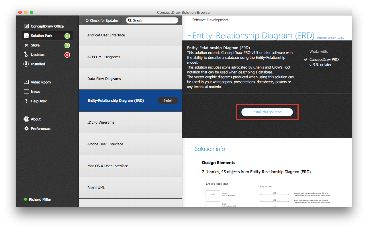 After ConceptDraw STORE and ConceptDraw DIAGRAM are downloaded and installed, you can install the Entity-Relationship Diagram