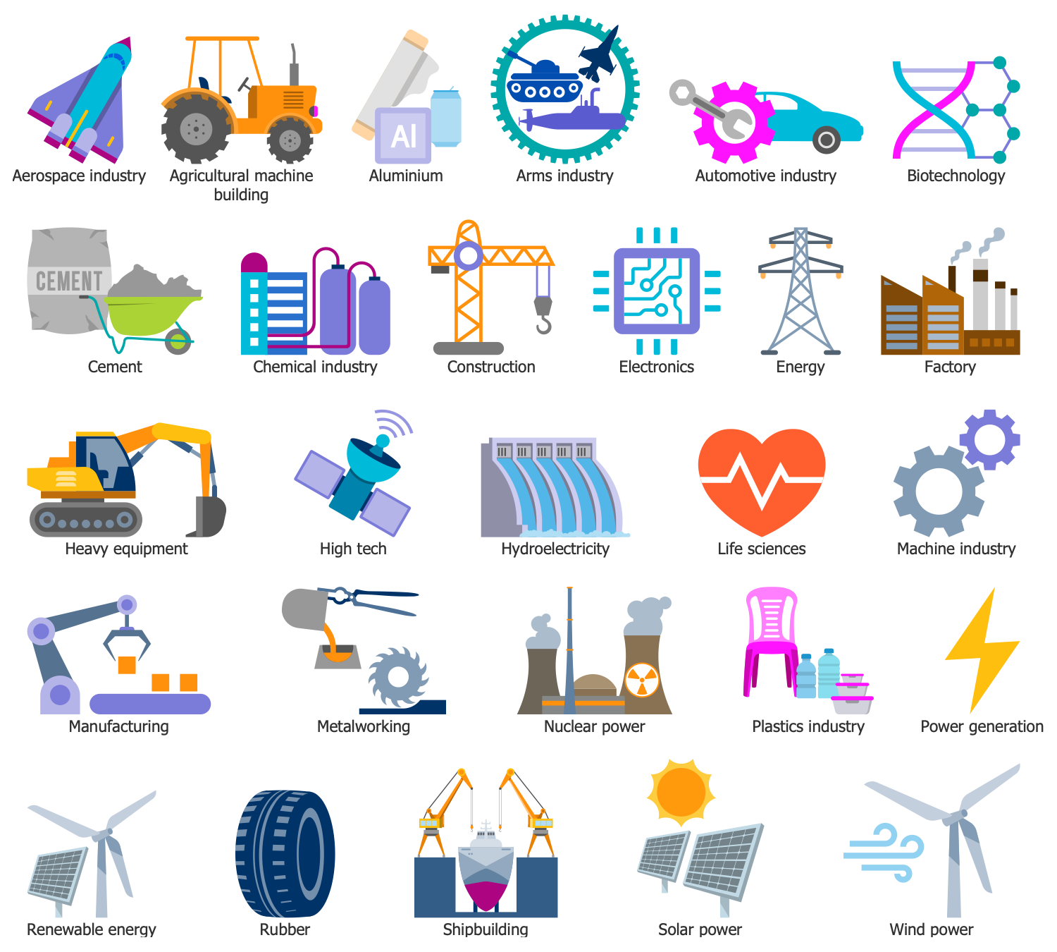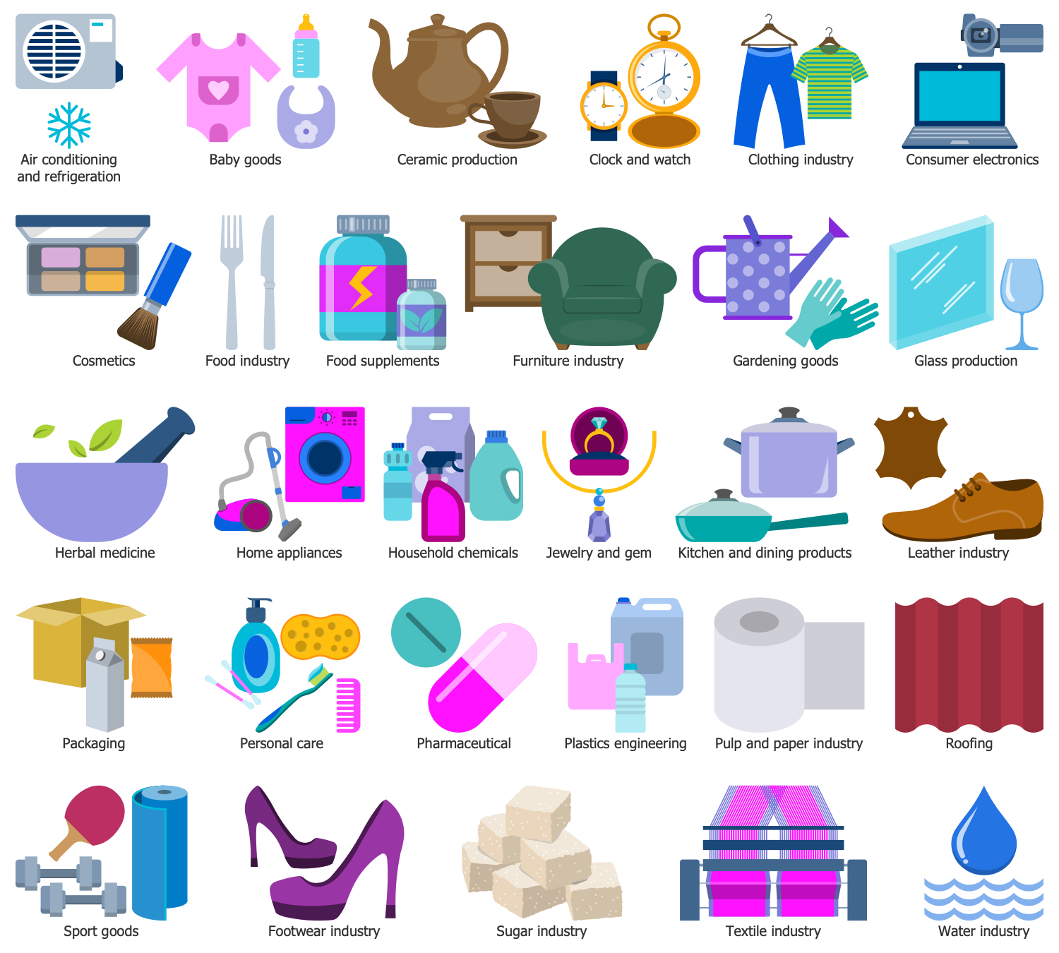 All source documents are vector graphic documents which are always available for modifying, reviewing and/or converting to many different formats, such as MS PowerPoint, PDF file, MS Visio, and many other graphic ones from the ConceptDraw Solution Park or ConceptDraw STORE. The Economy Infographics solution is available to all ConceptDraw DIAGRAM users to get installed and used while working in the ConceptDraw DIAGRAM charting and drawing software.