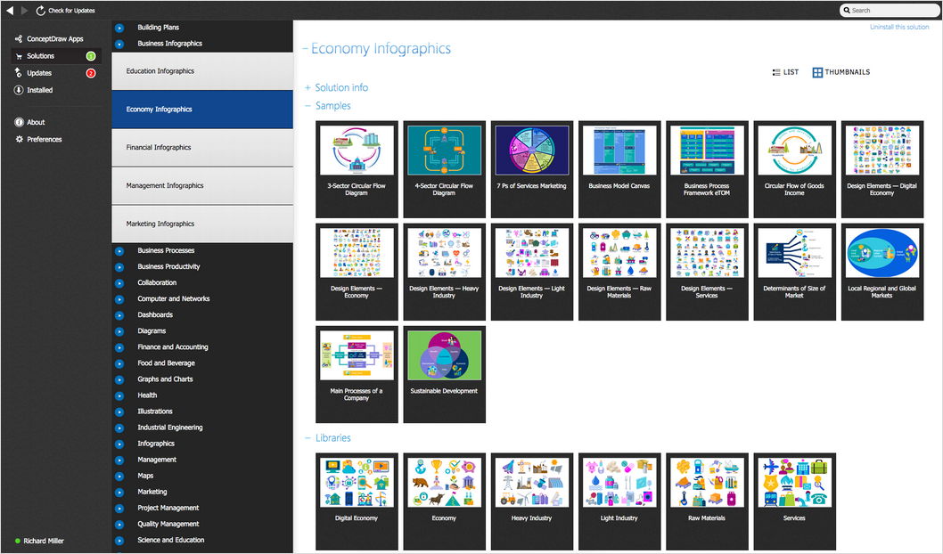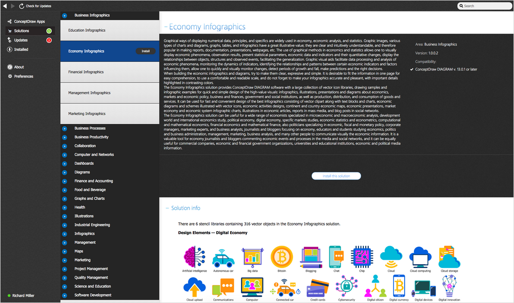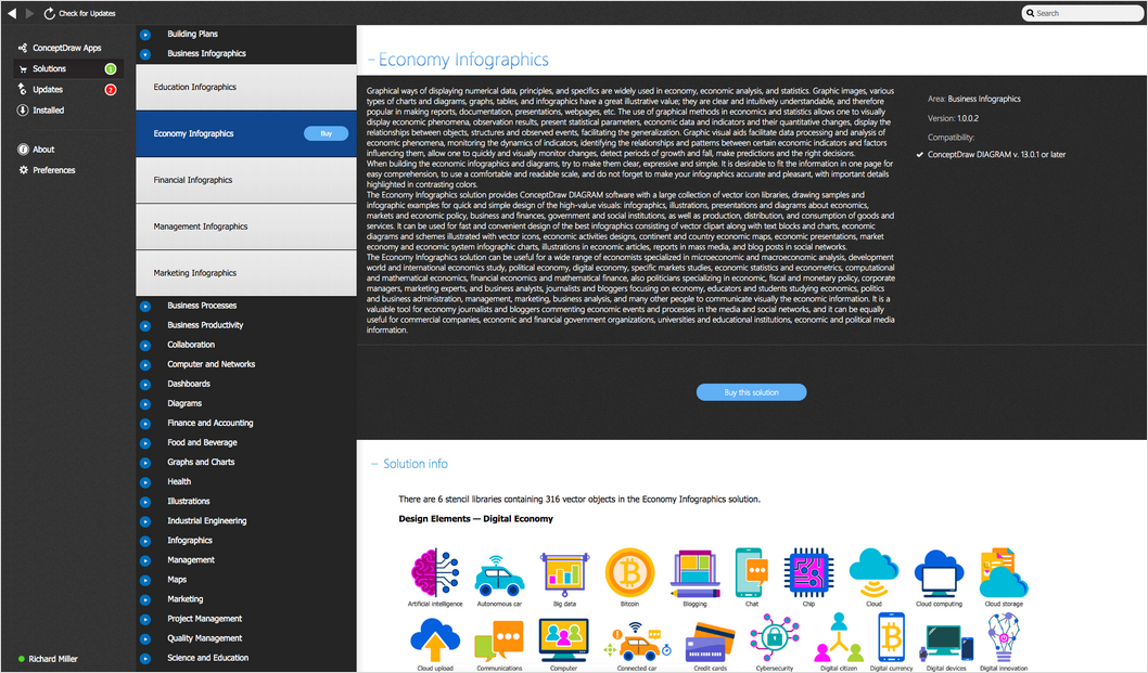 After ConceptDraw DIAGRAM is installed, the Economy Infographics solution can be purchased either from the Business Infographics area of ConceptDraw STORE itself or from our online store. Thus, you will be able to use the Economy Infographics solution straight after.