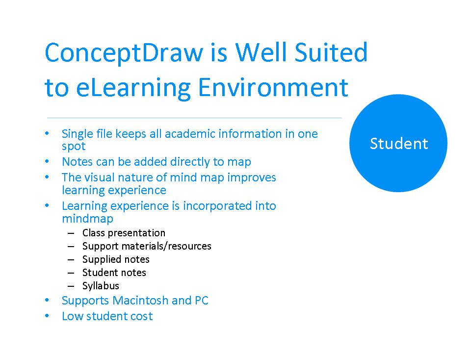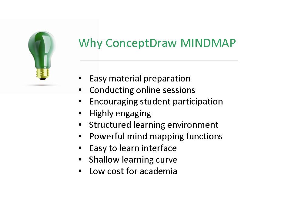 ConceptDraw MINDMAP helps you create educational materials and then present the prepared content to students using a Skype conference call to deliver content.