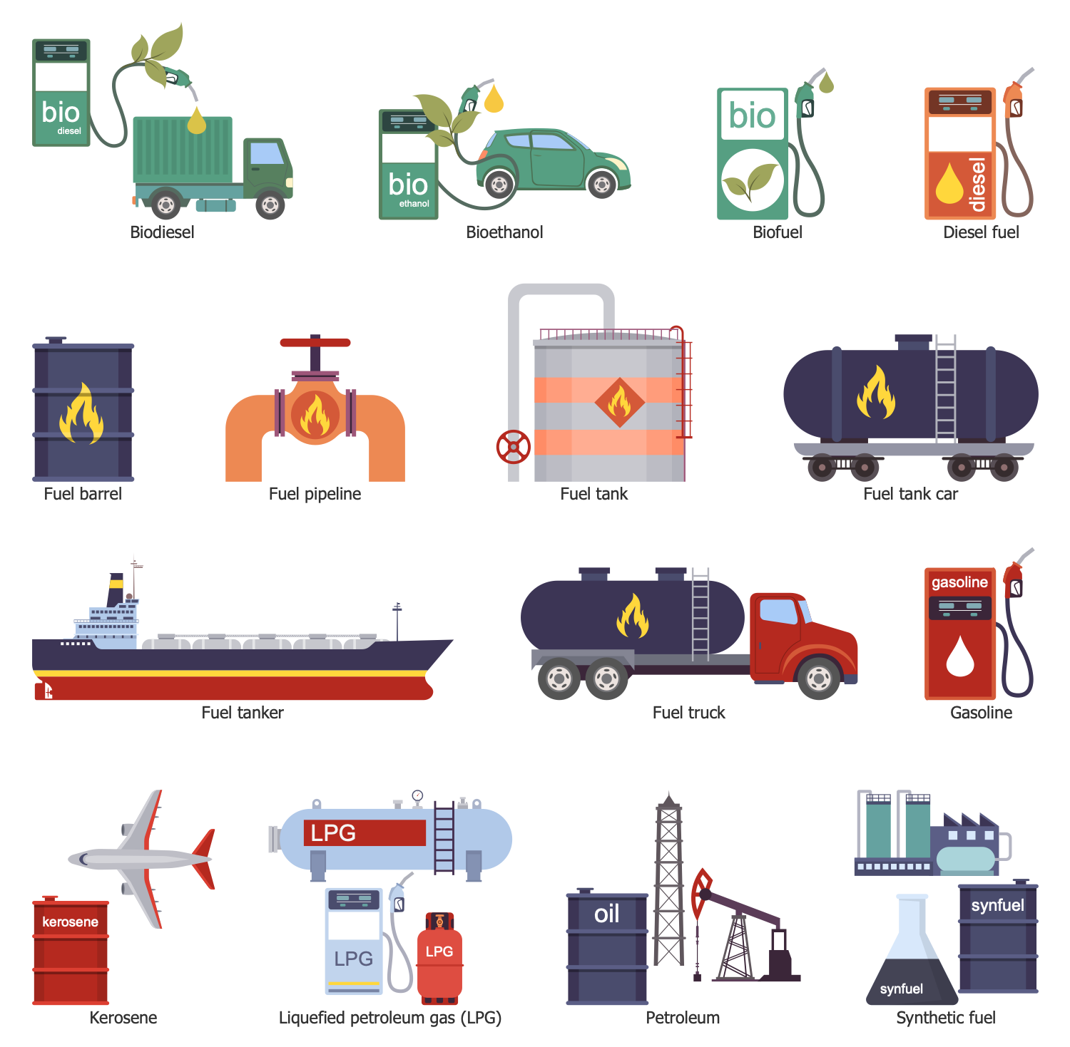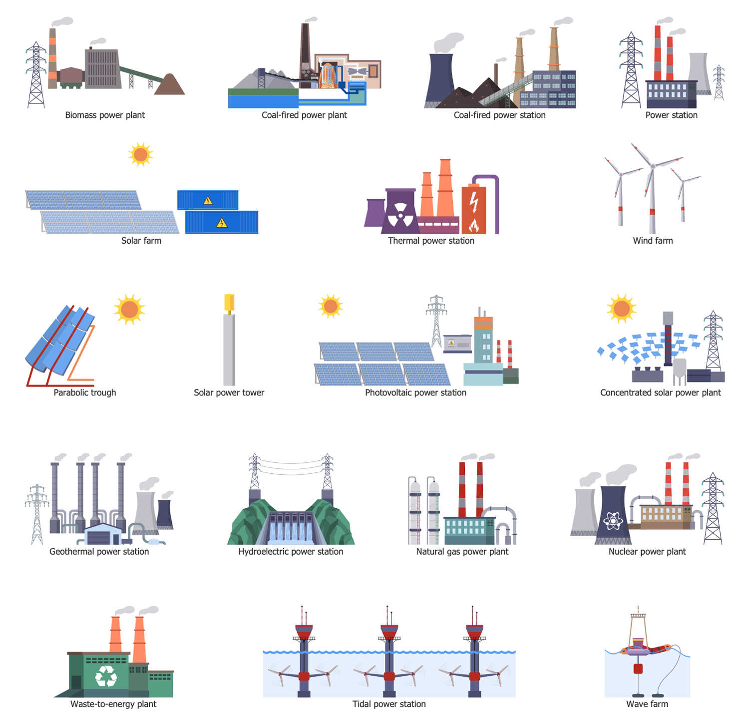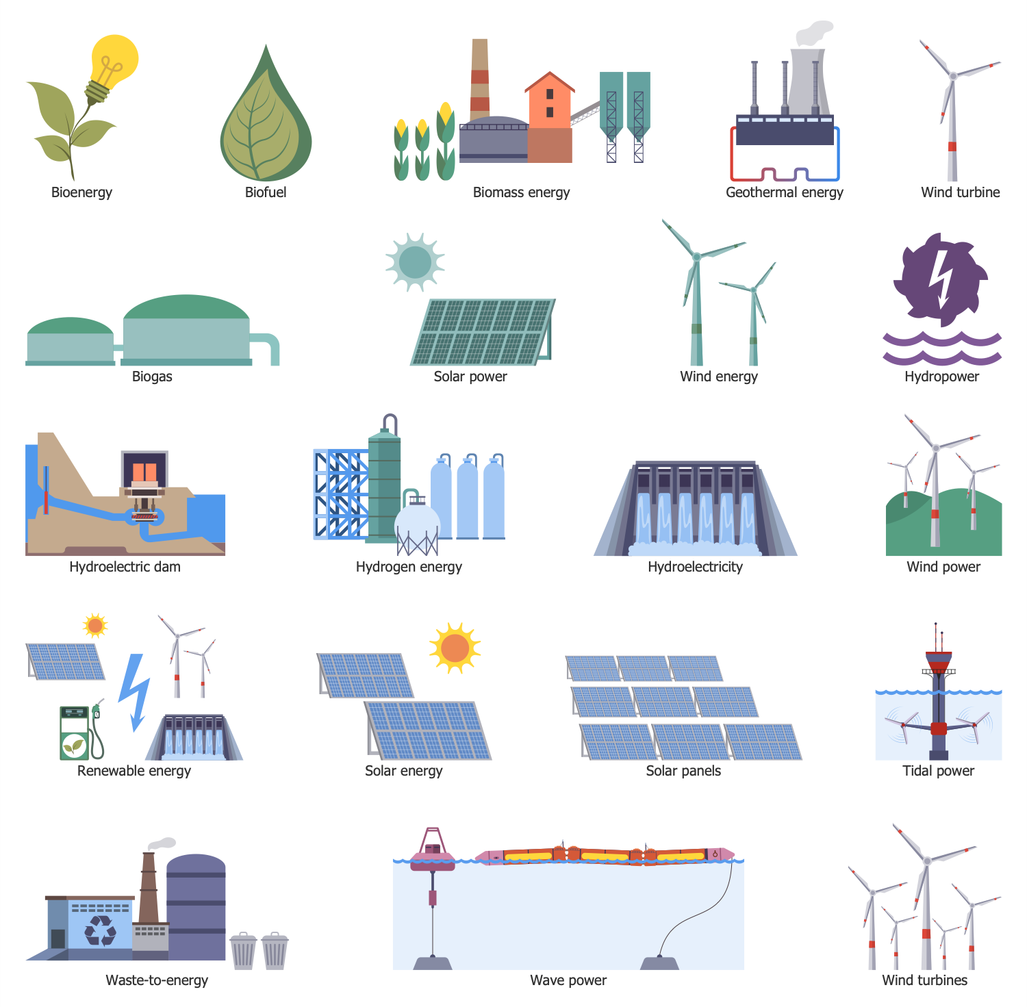The Energy Industry Infographics solution contains 17 examples and 9 libraries containing 174 vector graphics and icons, to allow you to create professional-looking documents.