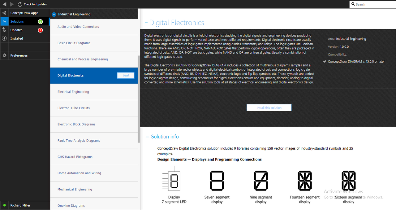 After ConceptDraw STORE and ConceptDraw DIAGRAM are downloaded and installed, you can install the Digital Electronics solution from the ConceptDraw STORE.