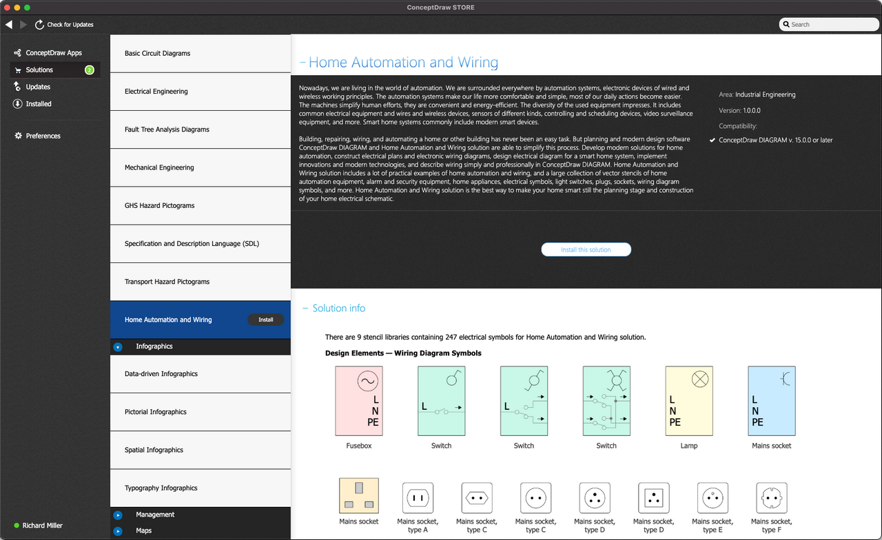 After ConceptDraw STORE and ConceptDraw DIAGRAM are downloaded and installed, you can install the Home Automation and Wiring solution from the ConceptDraw STORE.