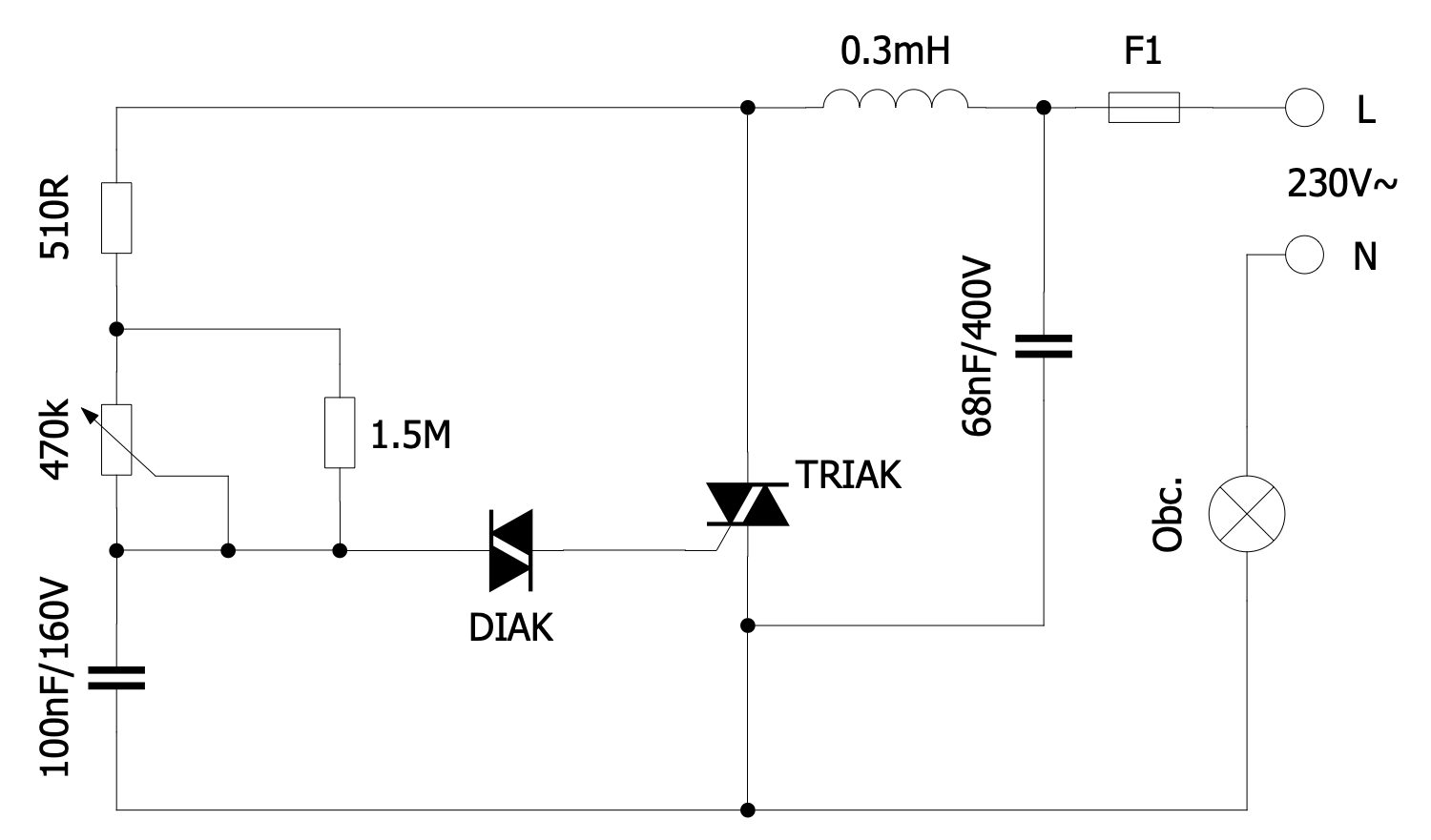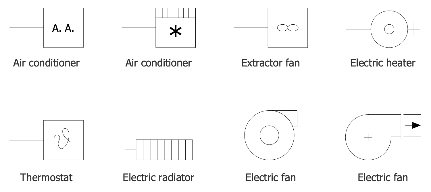 This sample shows a circuit of a triac light power regulator. Triacs are used in AC circuits to conduct current. They act as regulator keys used to create circuits. Triacs are semiconductor elements related to thyristors. Typically, a triac includes three outputs: one control (gateway G) and two power outputs (anodes A1 and A2), which, when triggered, conduct current in two directions. The triac is turned on by the gate current and, accordingly, turned off in the absence of current. Triacs are often used as bi-directional connectors, relays, or power regulators. They work in both directions of polarization and behave like thyristors in the positive part. Triac switching occurs regardless of polarization. Triacs are widely used in electronics. They are used in motor speed controllers, electric fans, home appliances, dimmers and more. Use the drawing tools in ConceptDraw DIAGRAM and Home Automation and Wiring to efficiently create circuits with all the elements you need, including triacs, diacs and more.